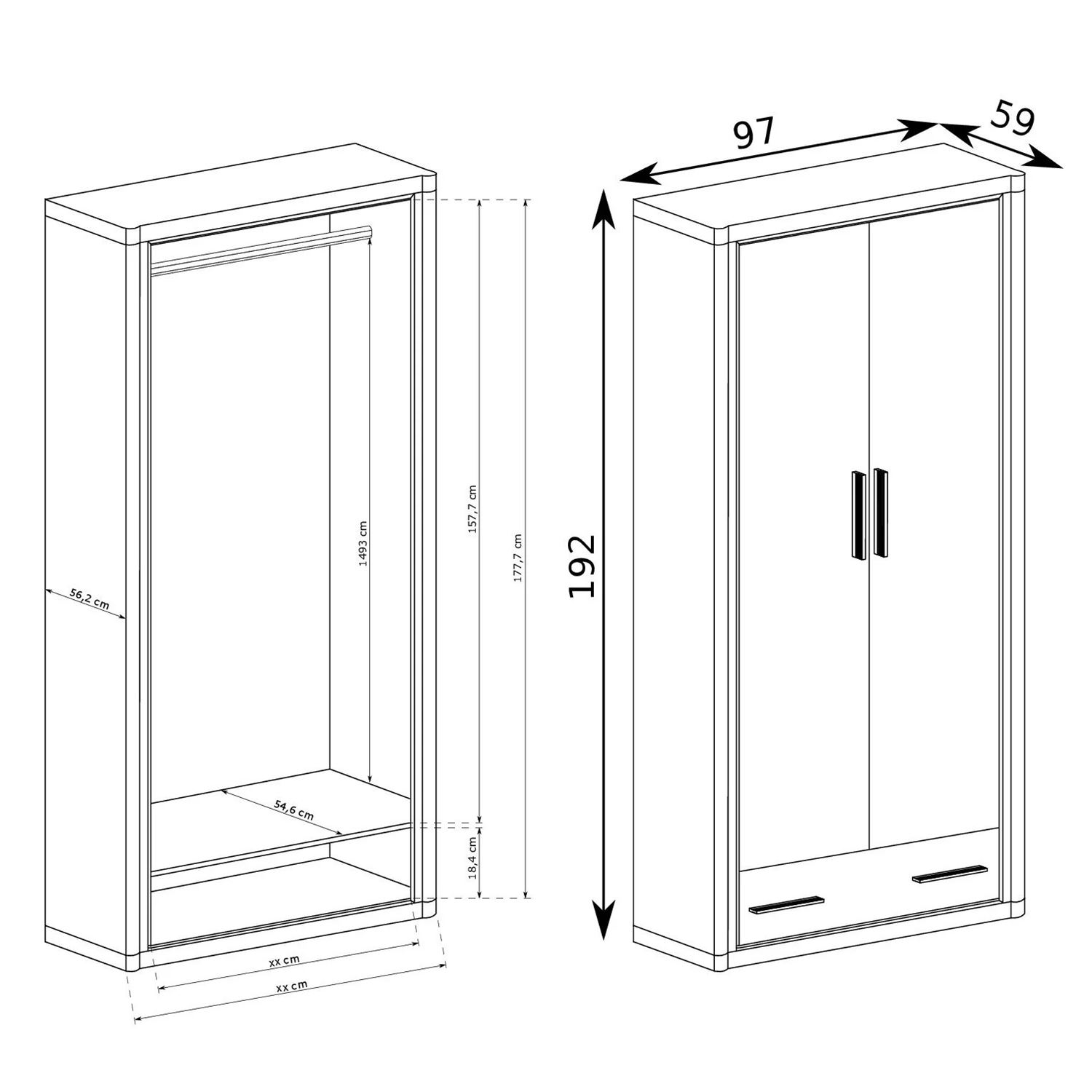 Този голям двукрилен гардероб от серия Dallas е стилно и практично решение за модерен интериор.