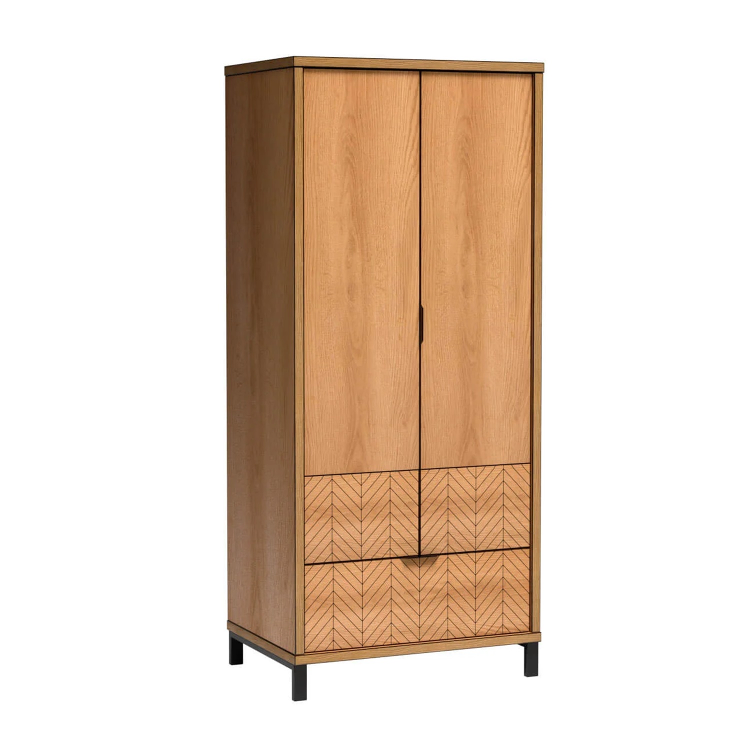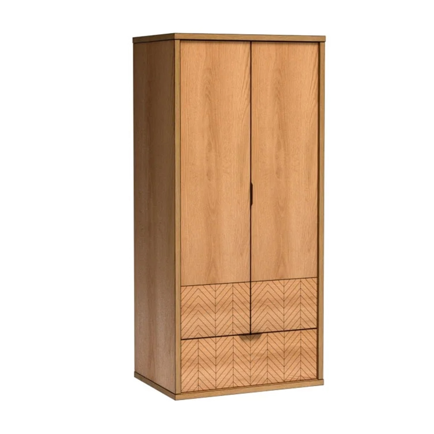 Практичен и елегантен двукрилен гардероб в цвят дъб карамел, съчетаващ стил и функционалност, серия Fonti.