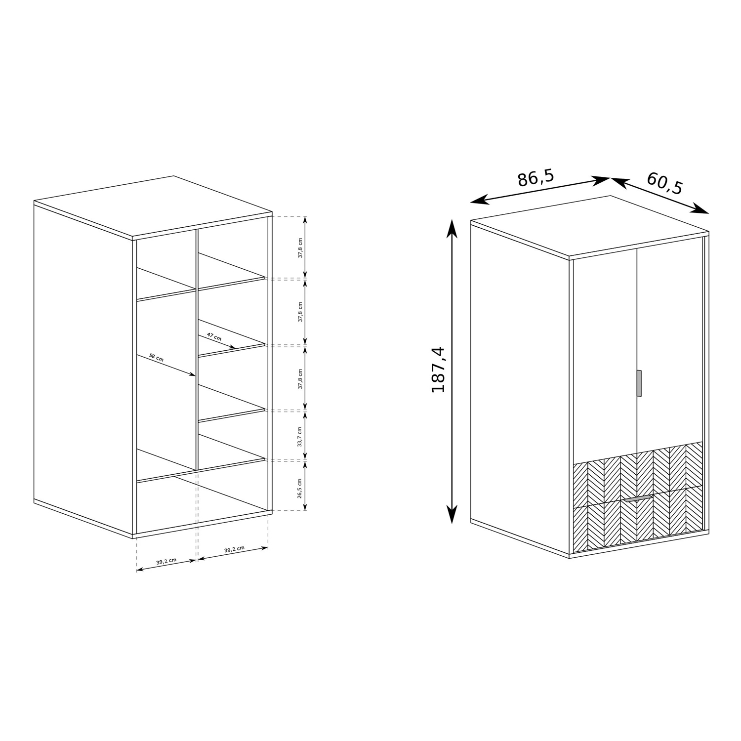 от 763.00 € / 1492.30 лв.Двукрилен гардероб с чекмедже Хесен (2 цвята)