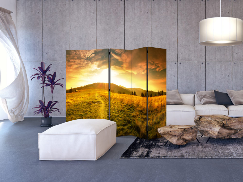 Срокът за доставка на този двулицев декоративен параван с хълм по залез е 14 – 21 дни.