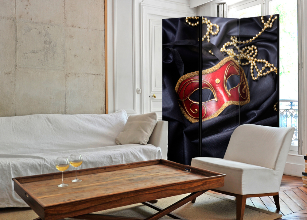 Двулицев интериорен параван с карнавална маска и огърлица -3-крилен