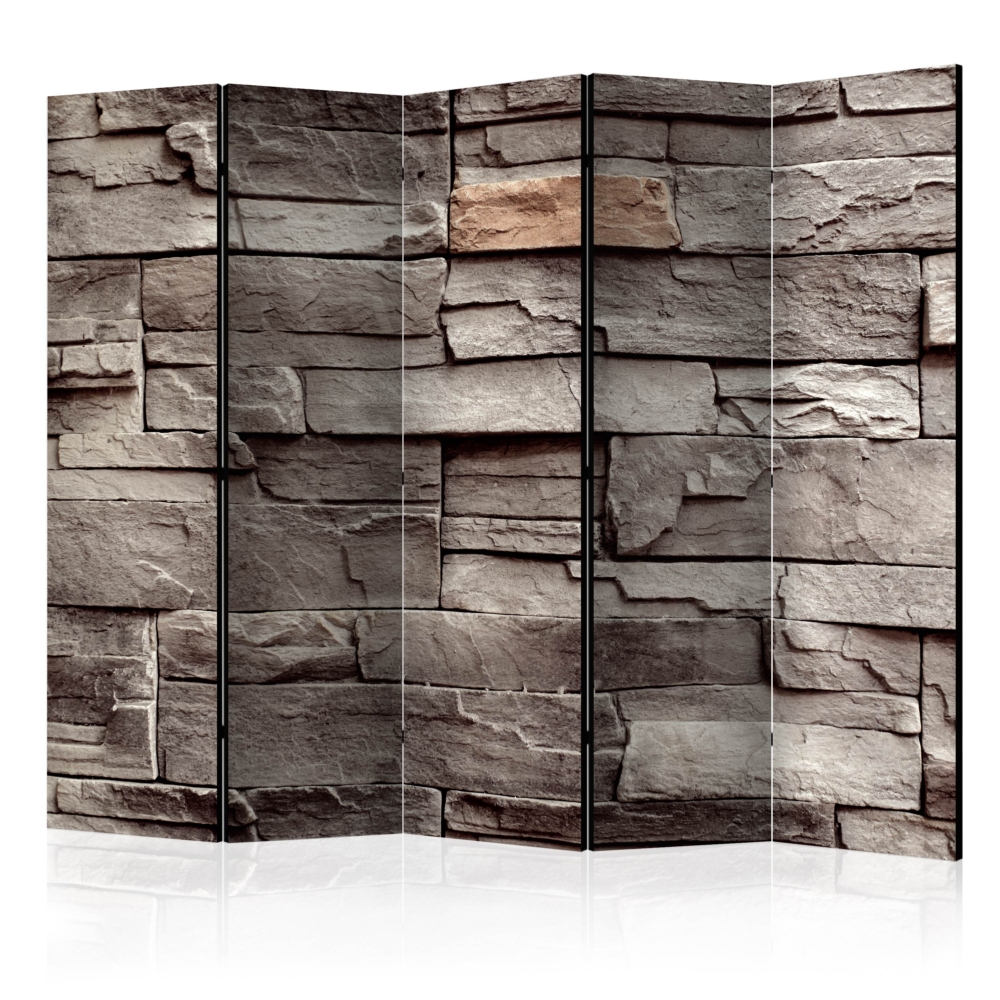 Двулицев параван с 3D ефект на каменна стена - 5-крилен
