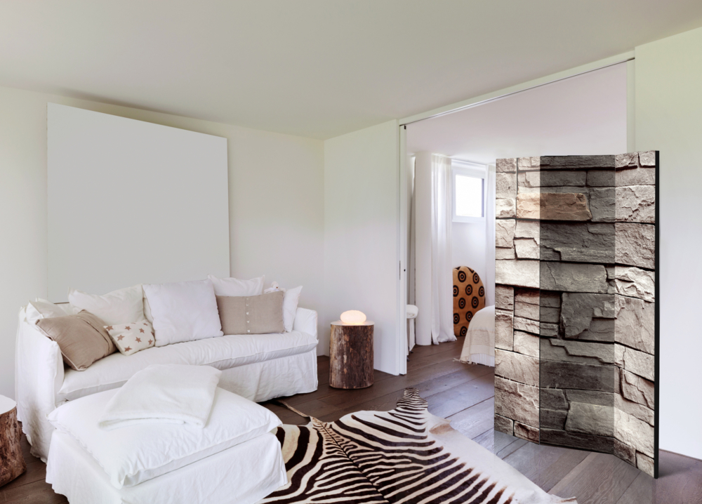 Двулицев параван с 3D ефект на каменна стена - 3-крилен