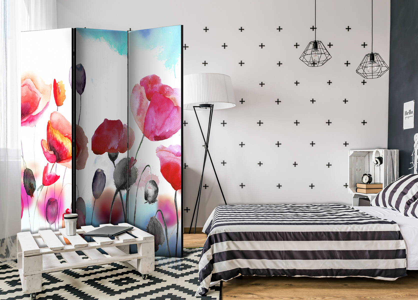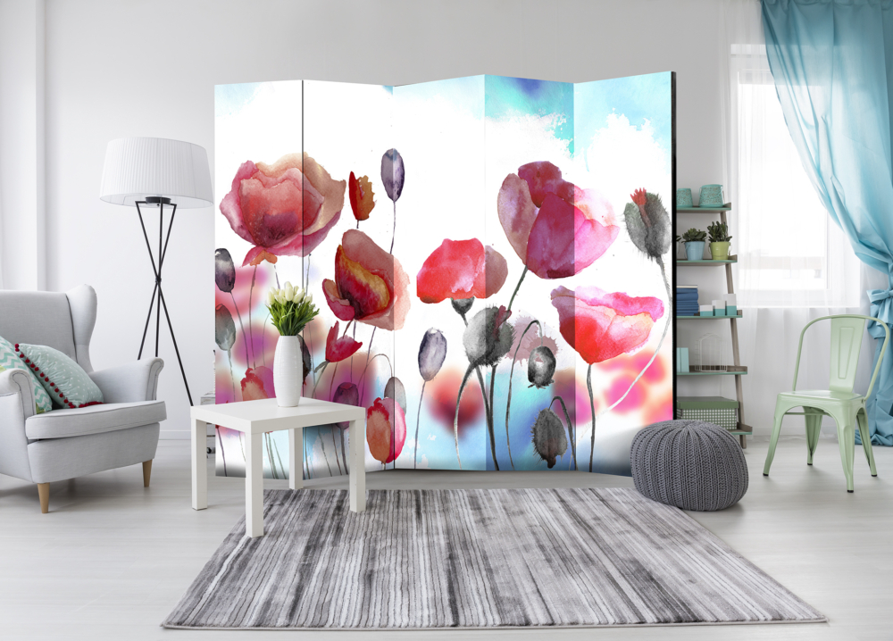 Срокът за доставка на този двулицев параван за стая с рисувани макове е 14 – 21 дни.