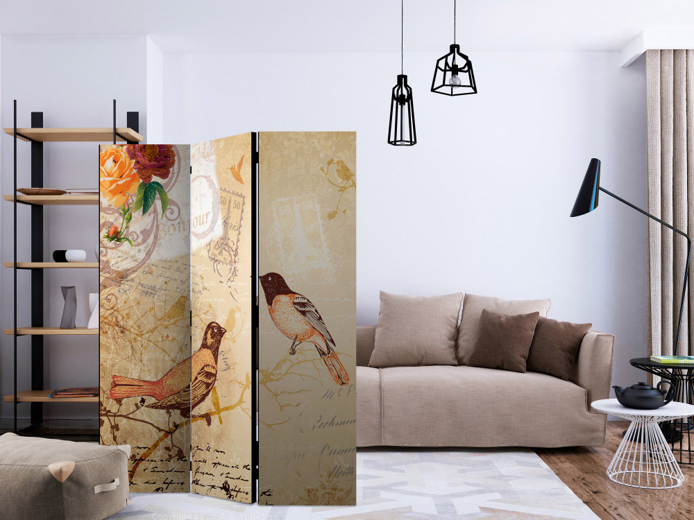 Този двулицев параван с птици във винтидж стил е оригинална декорация за романтичен интериор. Изработен е от дървена рамка с двустранен печат върху флизалиново платно. Благодарение на оригиналния мотив с качество на печата Full HD, този параван ще придаде неповторим чар на всяко помещение!