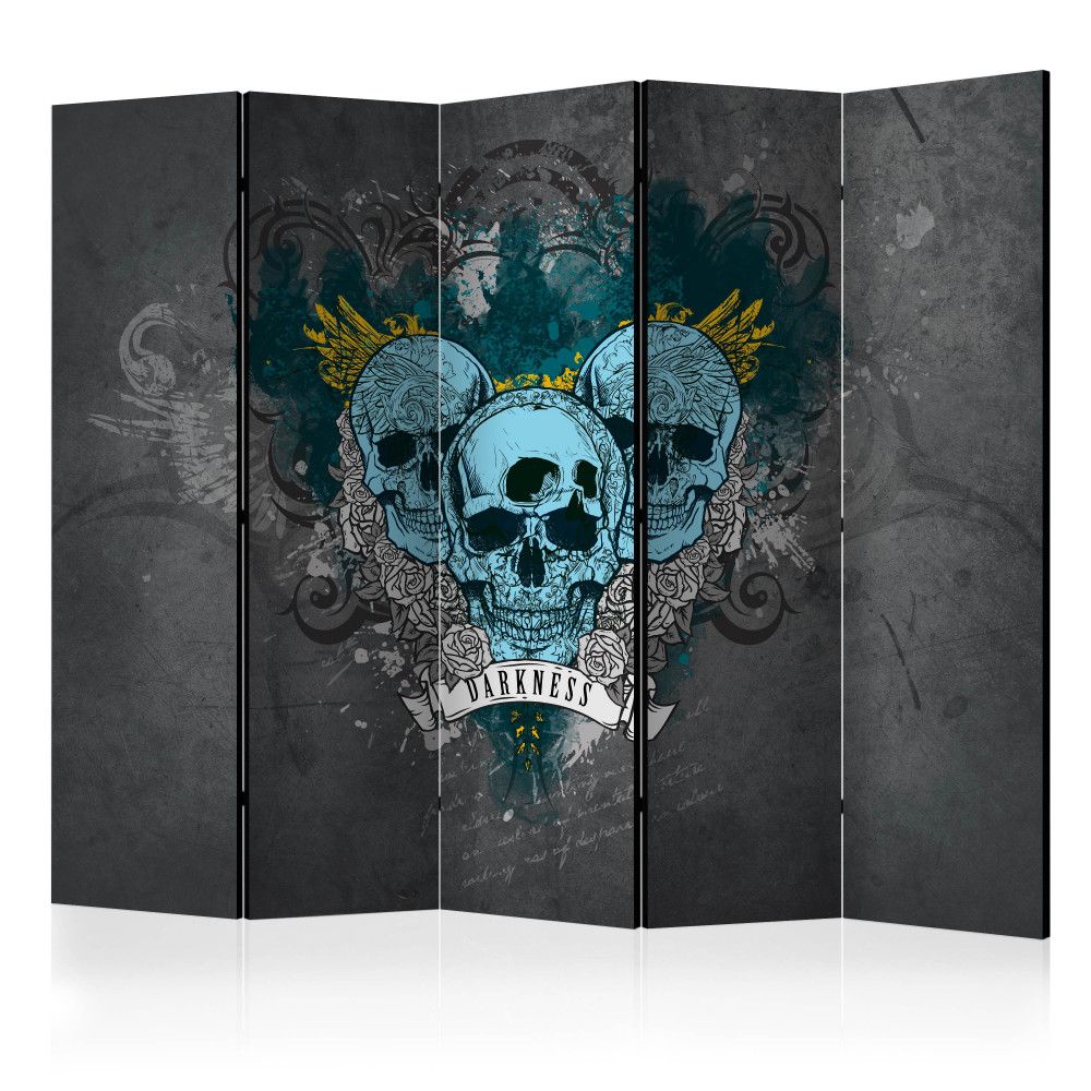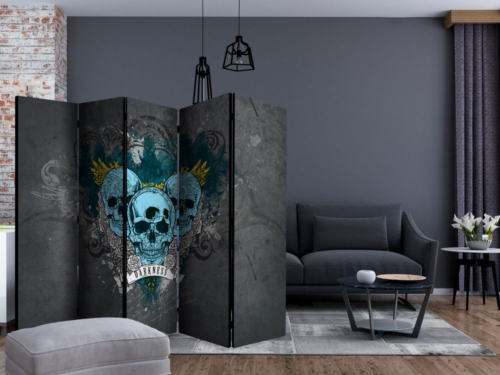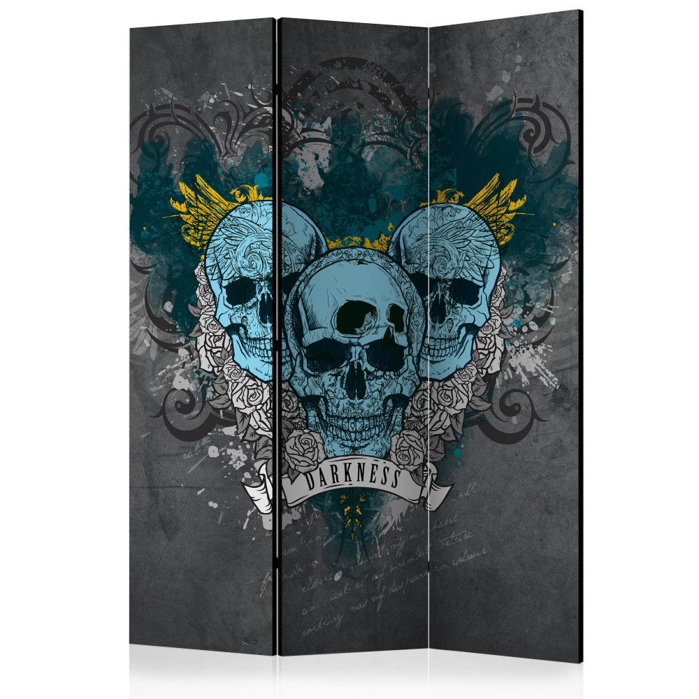 Този двулицев сгъваем параван с рисувани черепи е оригинална декорация за модерен интериор. Изработен е от дървена рамка с двустранен печат върху флизалиново платно. Благодарение на оригиналния мотив с качество на печата Full HD, този параван ще придаде неповторим чар на всяко помещение!