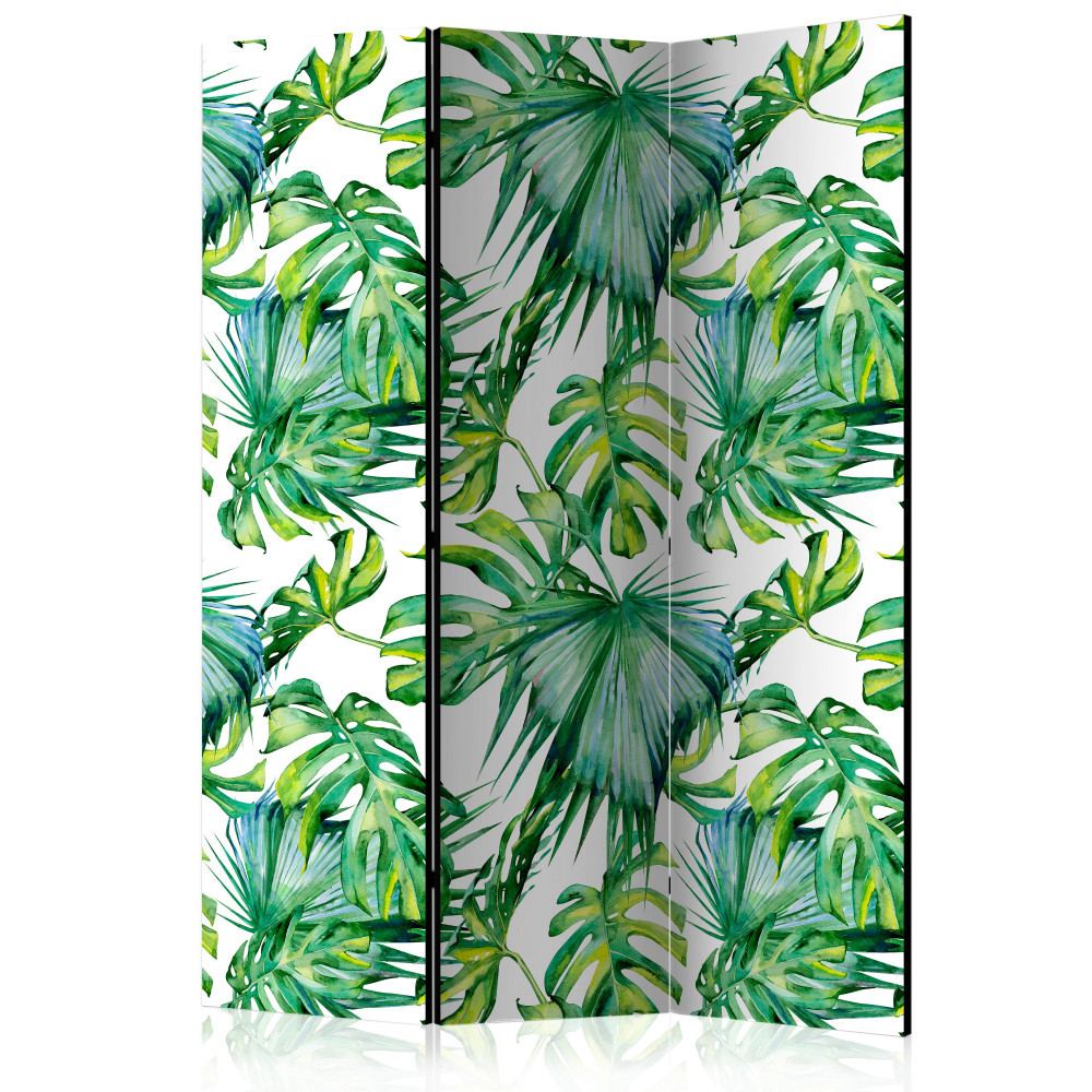 Двулицев сгъваем параван с тропически листа - трикрилен - интериор