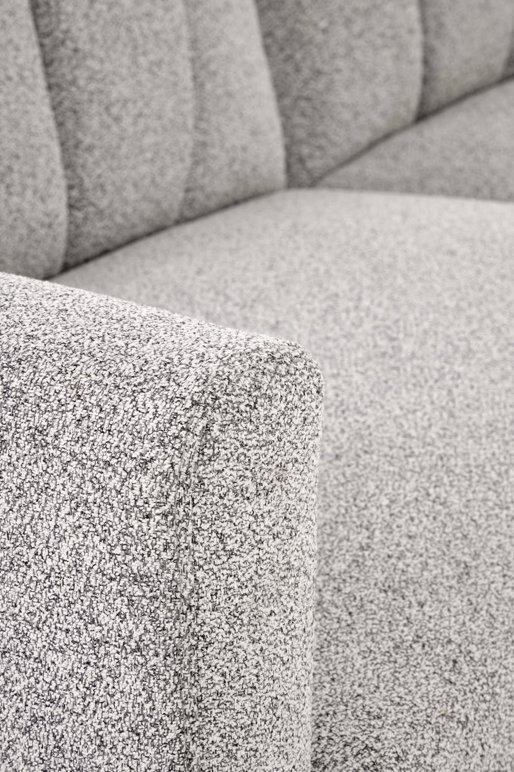 Изработен е от мек текстил в сив цвят и е поставен върху елегантни крачета от масивно дърво в черно.