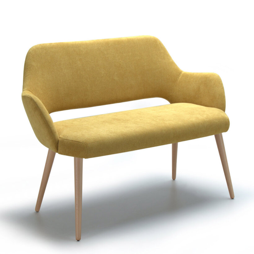 Двуместно канапе с дървени крака и мека дамаска в скандинавски стил.