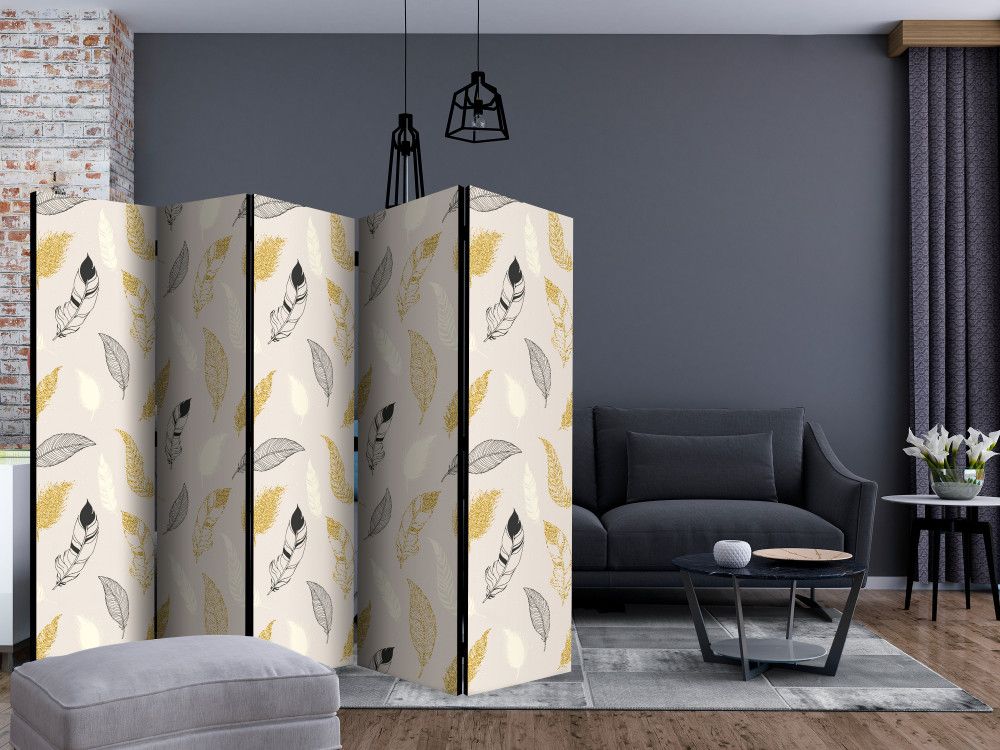 Двустранен декоративен параван с рисувани пера - петкрилен - интериор
