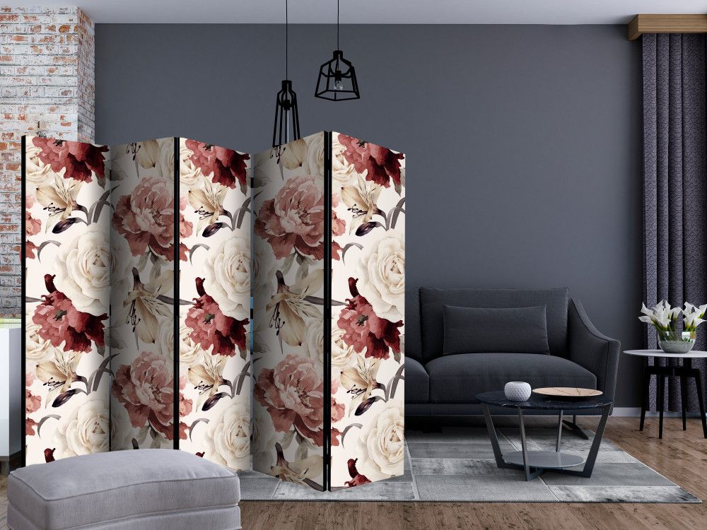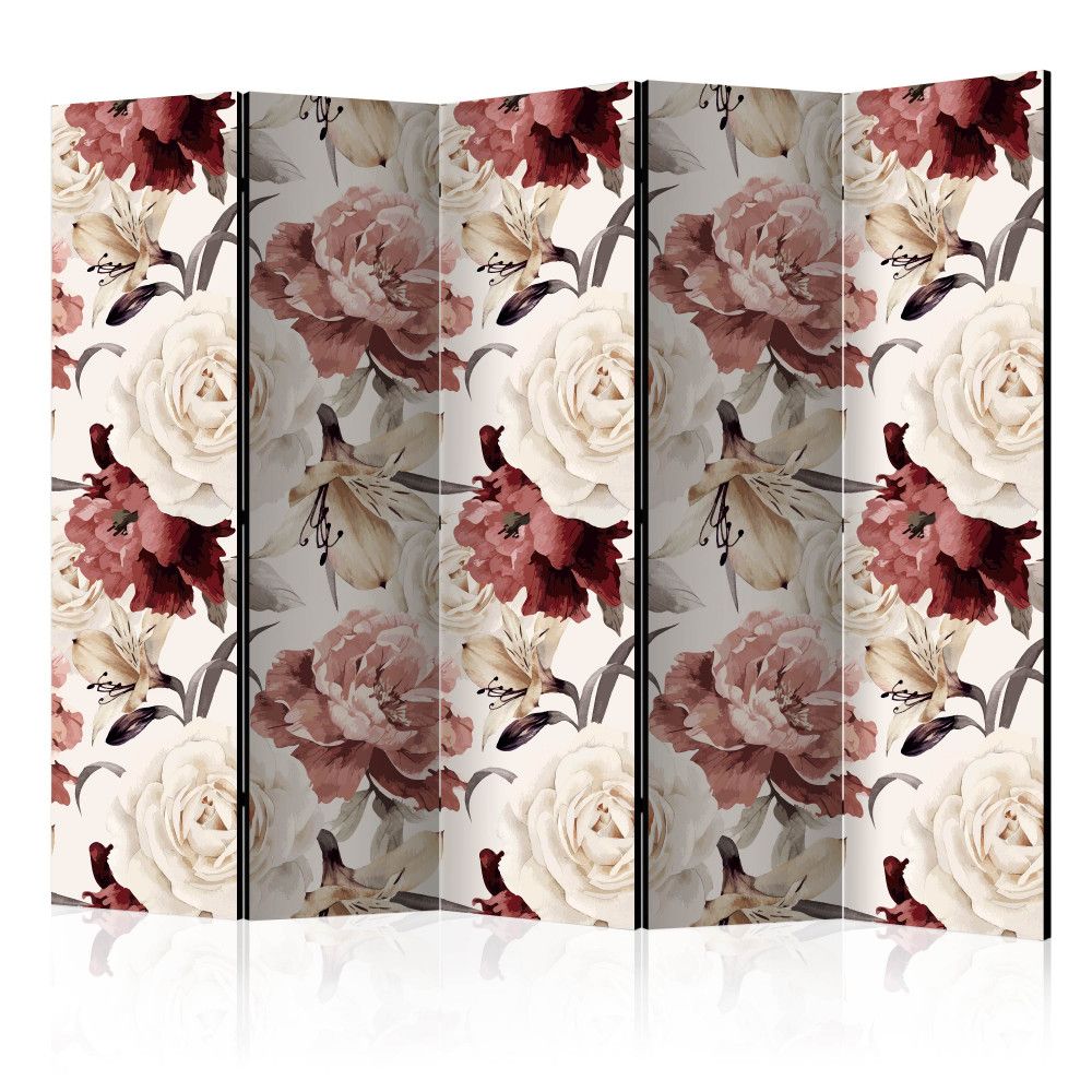 Двустранен сгъваем разделител за стая с цветя - петкрилен - интериор