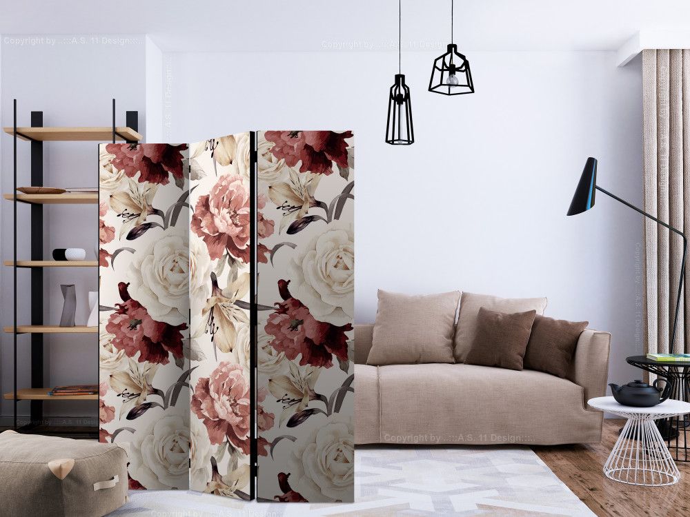 Двустранен сгъваем разделител за стая с цветя - трикрилен - интериор