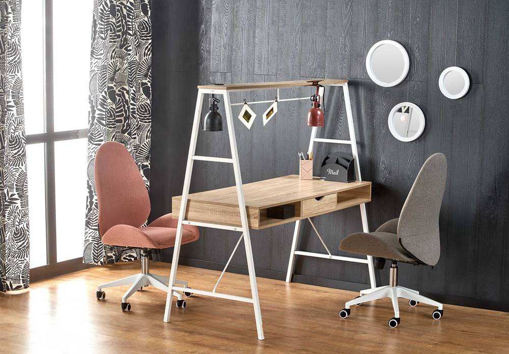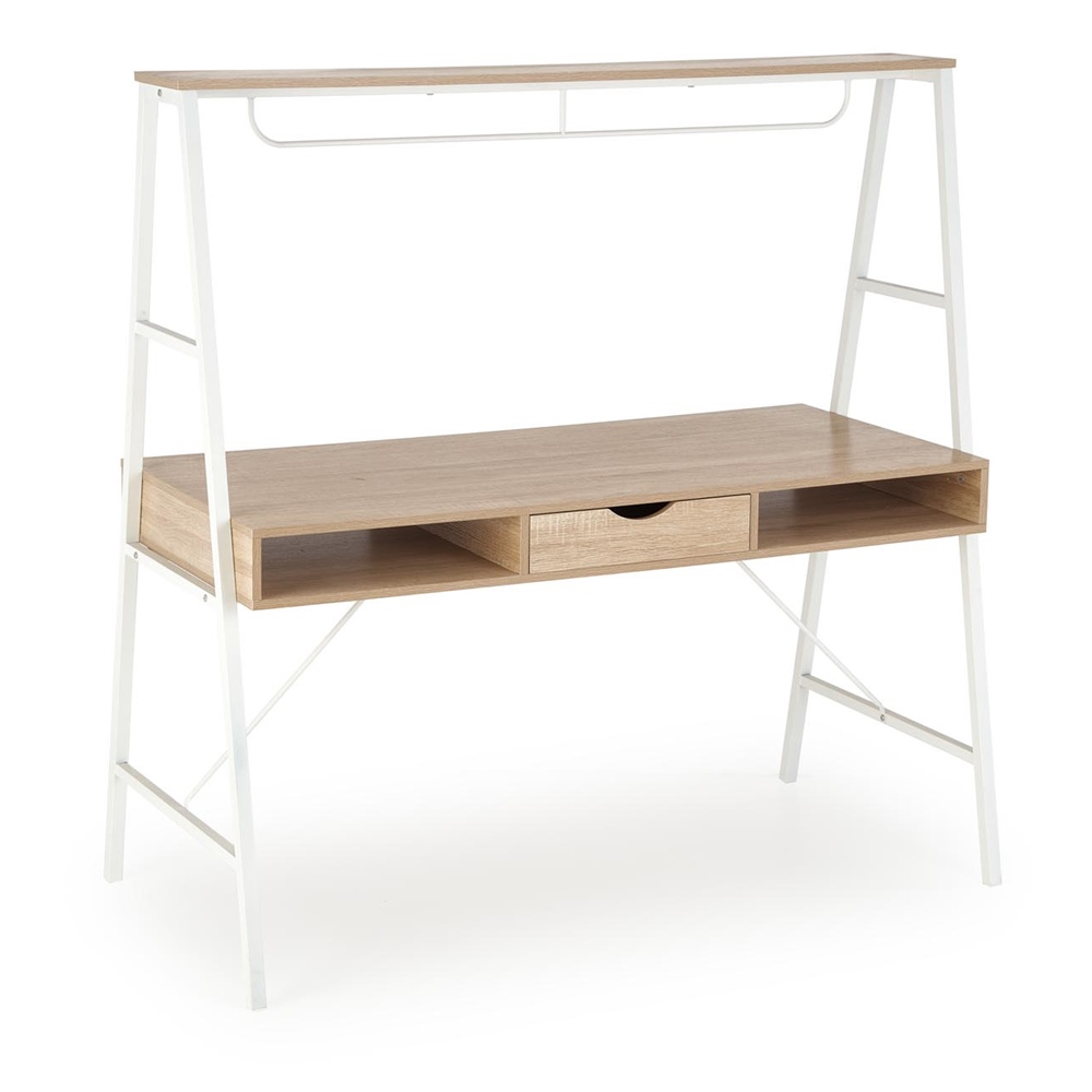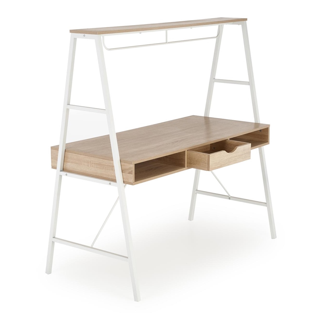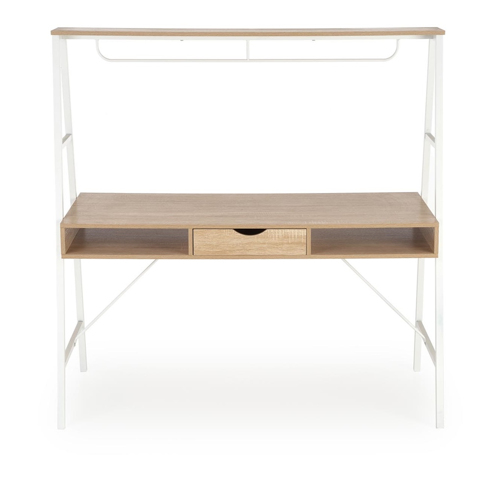Разполага с две чекмеджета и ниши за съхранение в плота. Има рафт и място за закачане на бележки, снимки и нощни лампи.