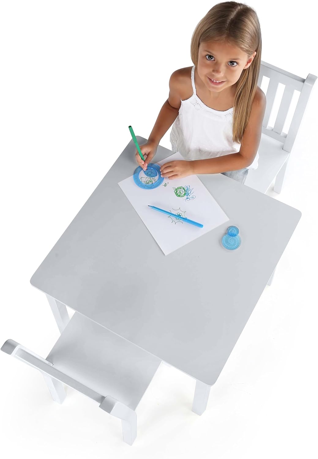 Дървена детска масичка със столчета в сиво или бяло е отличен избор за всяка детска стая. Много практичен модел, който чудесно се съчетава с всеки тип интериора. Подходящ за игра, хранене, четене, творчески занимания.