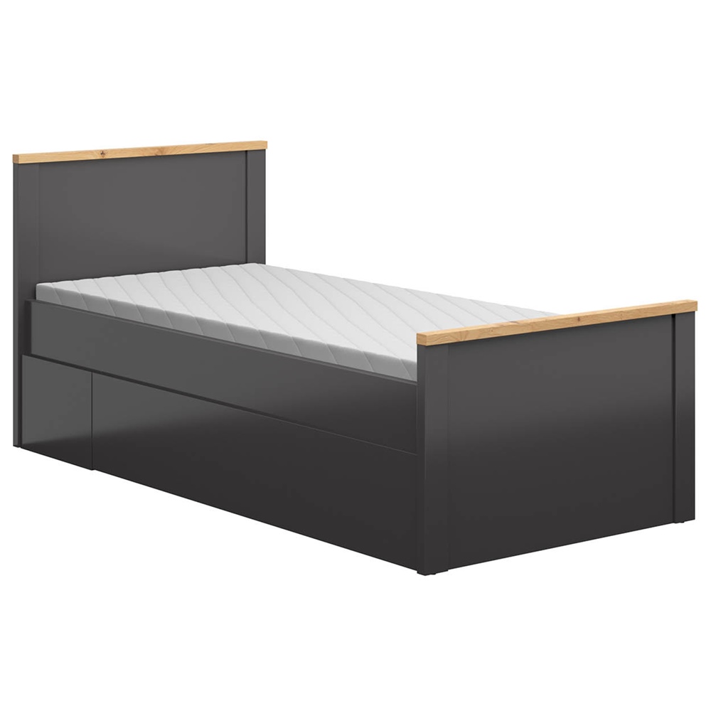 Единично легло, подходящо за матраци с размери 90 х 200 см и 120 х 200 см, изработено от ПДЧ, модулна система Хесен.