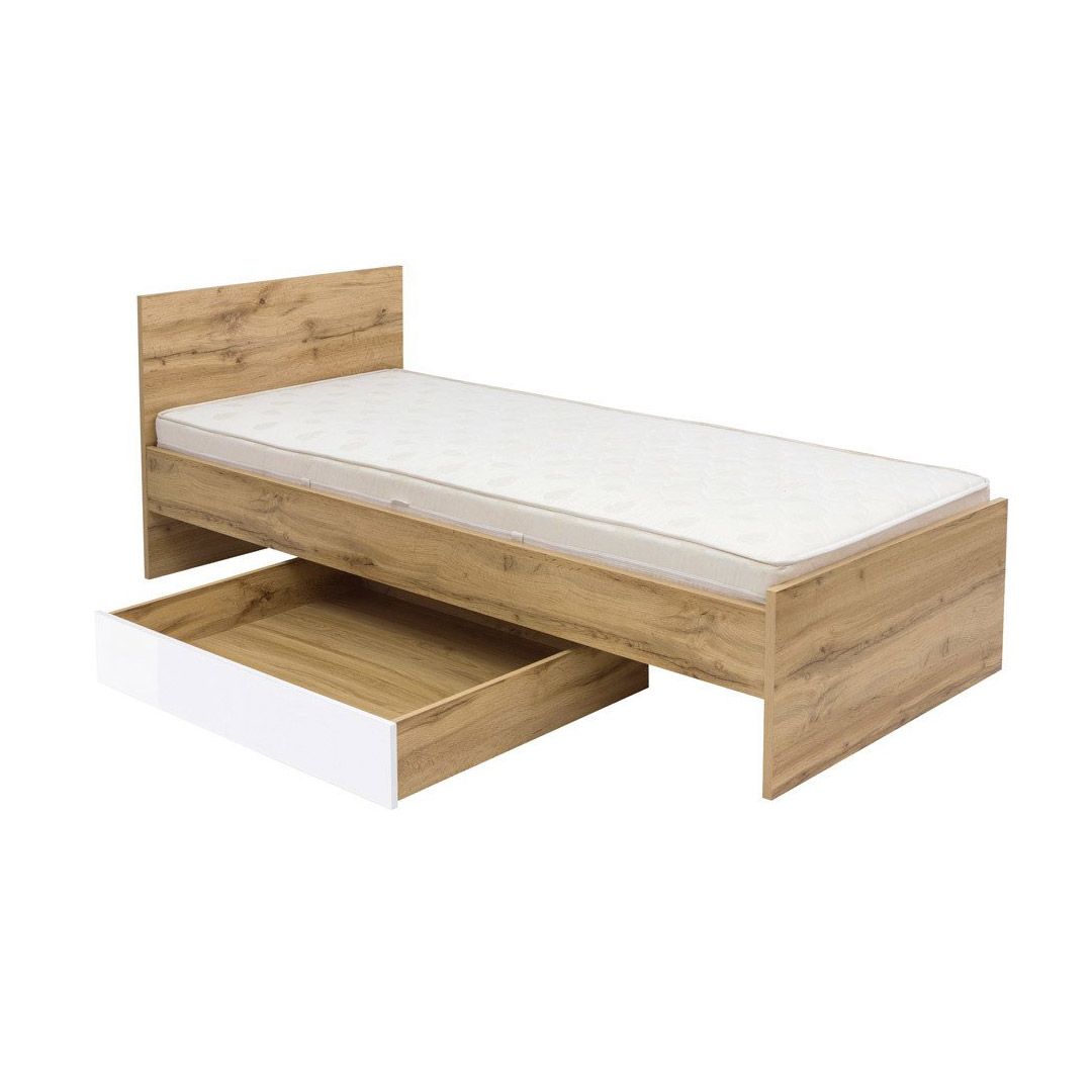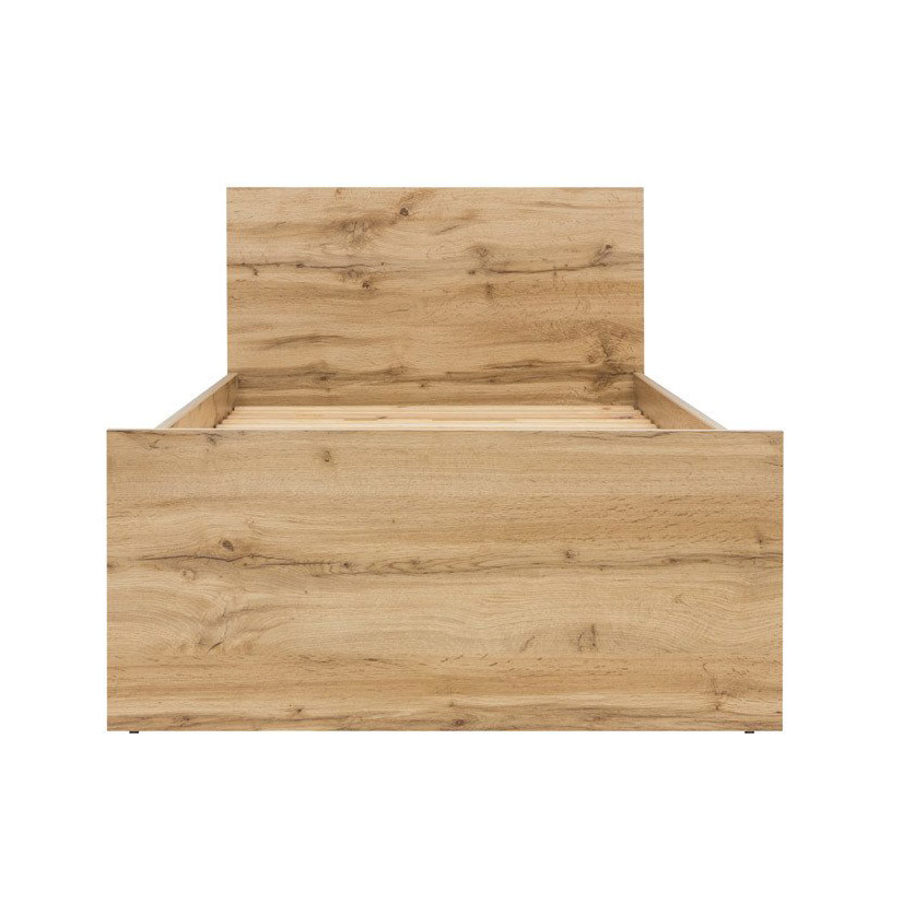 Единично легло, изработено от ПДЧ с меламиново покритие в цвят дъб вотан, подходящо за матрак 90 х 200 см, модулна система Зелле.