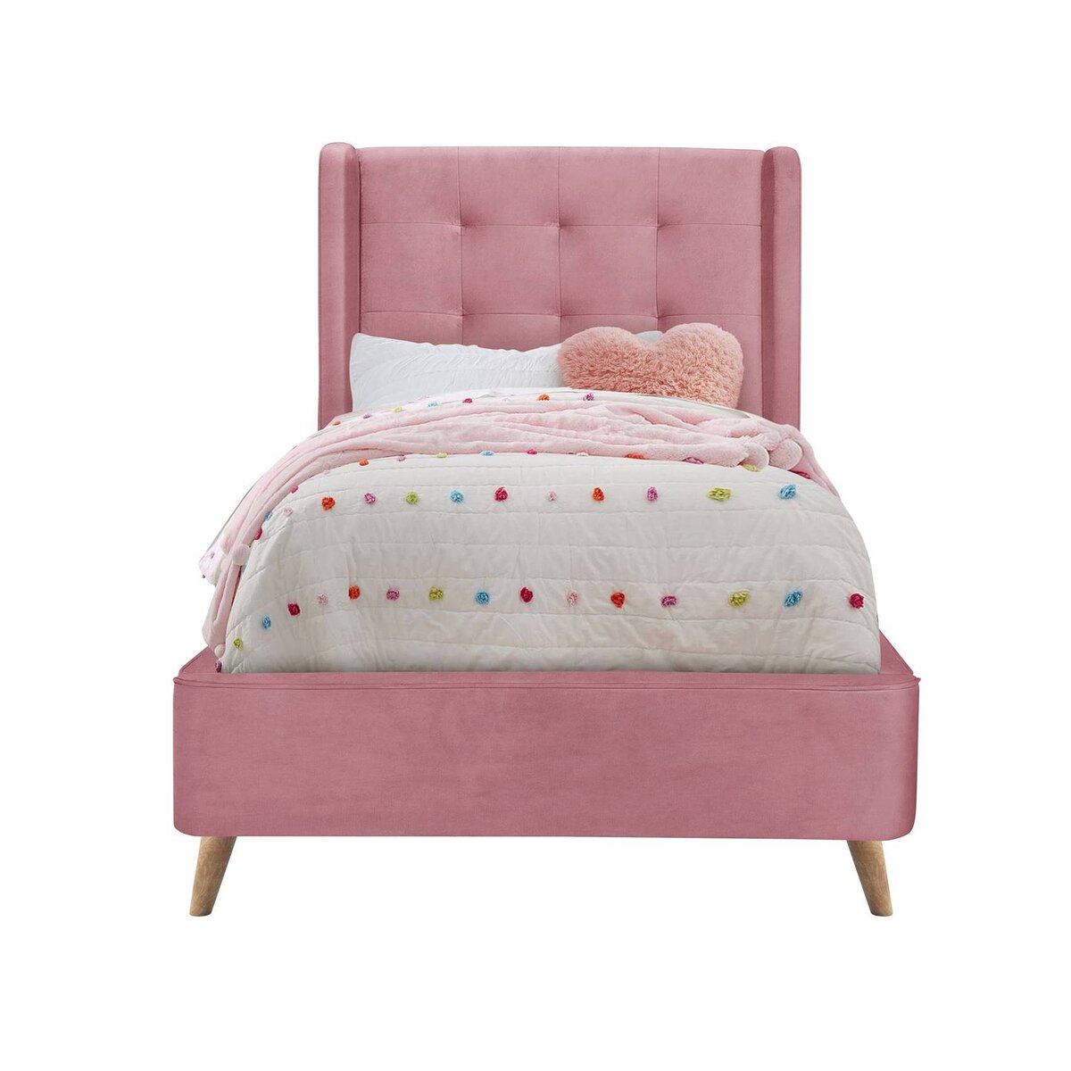 Единично розово легло с тапицирани табла и основа, Ханна.