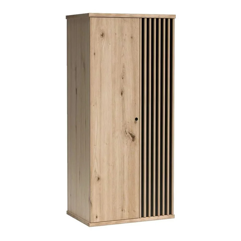 Еднокрилен гардероб с вертикални декоративни ламели по вратата – впечатлява с изчистен дизайн и естествена визия, серия Cali.