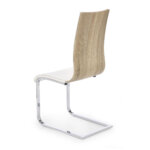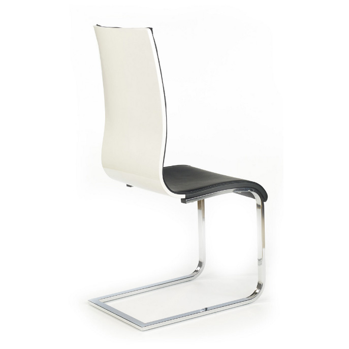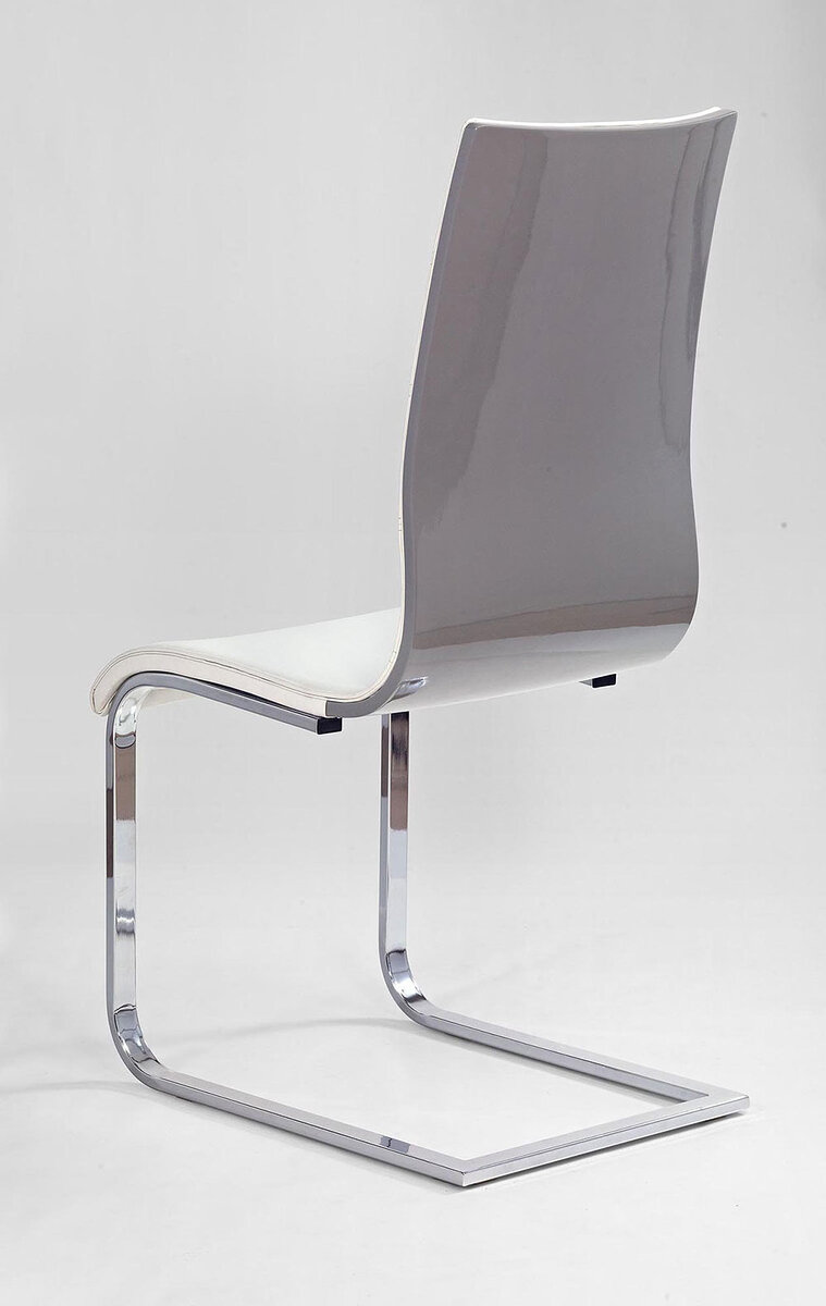 Елегантен двуцветен стол от еко кожа със седалка и облегалка от еко кожа и лакиран гръб. Пасва чудесно както на трапезарията у дома, така и в офис или студио.