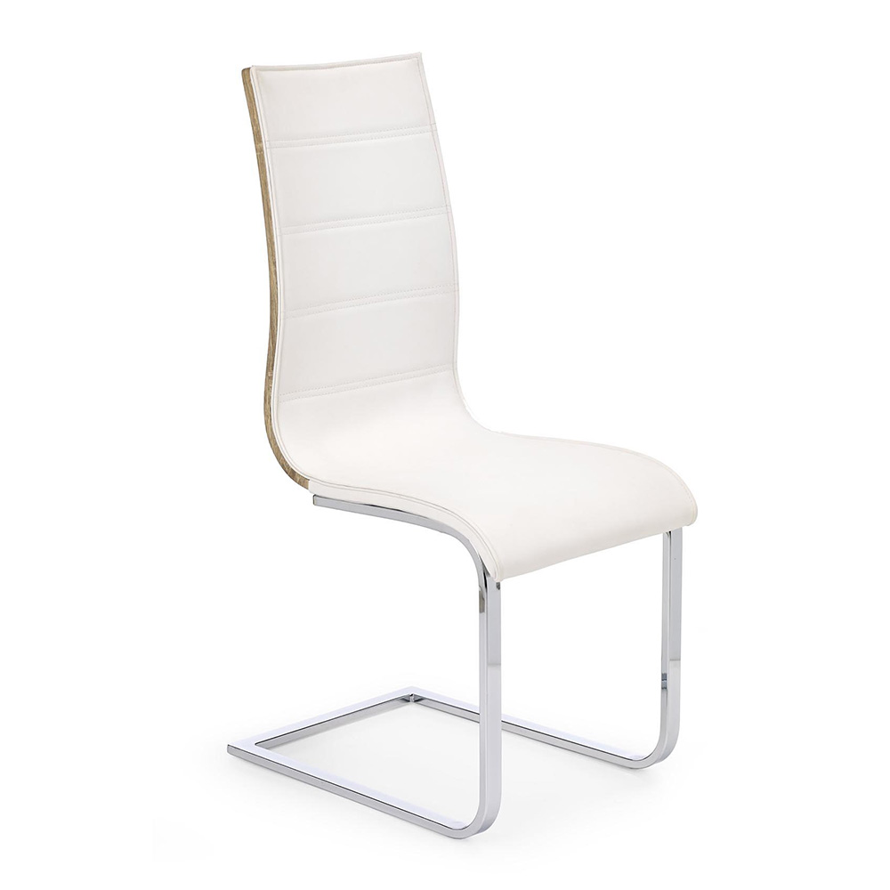 Елегантен двуцветен стол от еко кожа - бяло и дъб сонома