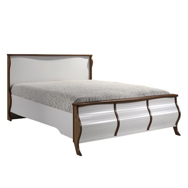 Елегантно легло с извити форми, изработено от ПДЧ  в цветовете бяло с античен дъб или черно с античен дъб, серия Шарлот.