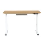 Ергономичното бюро е проектирано с регулируема височина и здрава прахово-боядисана метална основа в бяло, с нивелиращи крака за допълнителна стабилност.