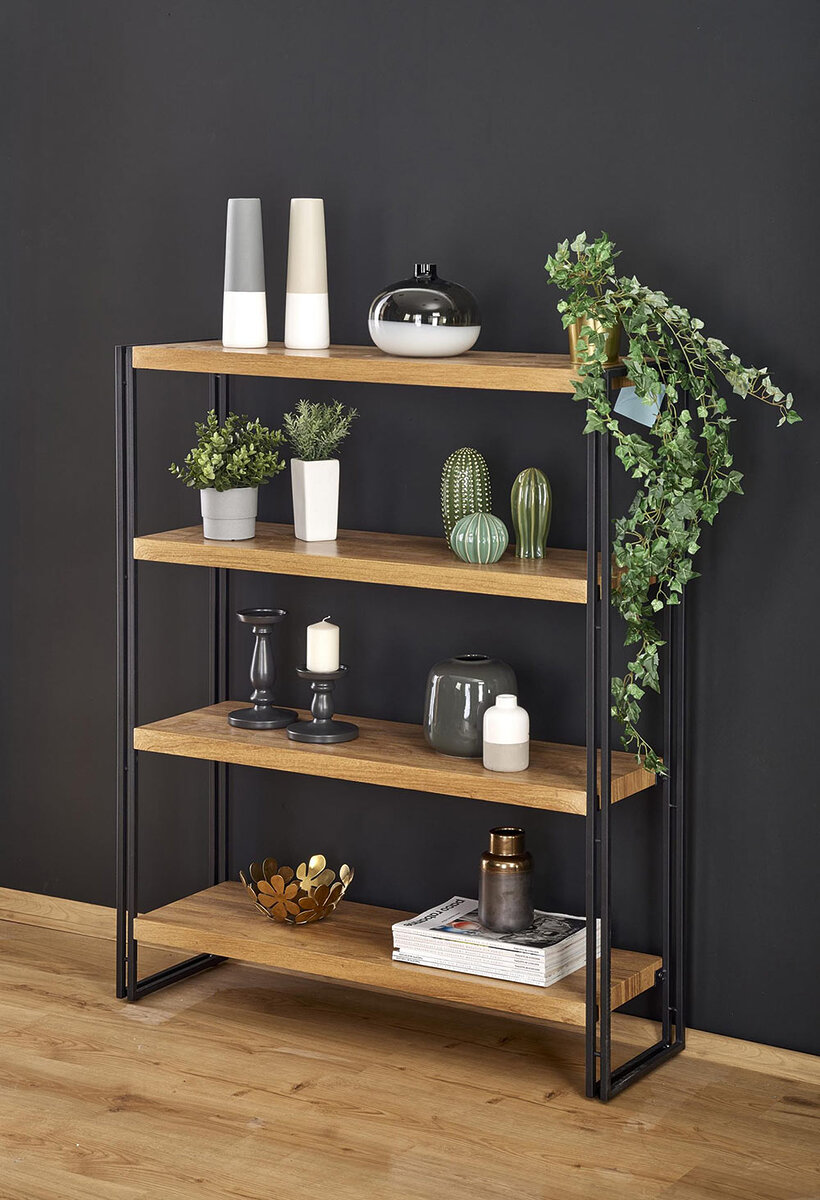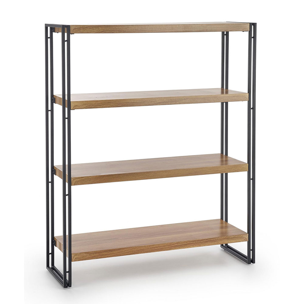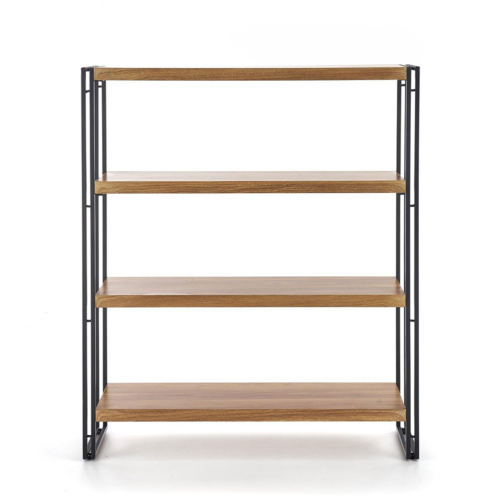 Етажерка с 4 рафта, изработена от МДФ в цвят златен дъб и черна метална конструкция в индустриален стил, серия Bolivar.