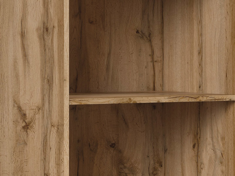Практична етажерка с пет рафтa в дървесен цвят дъб вотан, изработена от ПДЧ с меламиново покритие, модулна система Зелле.
