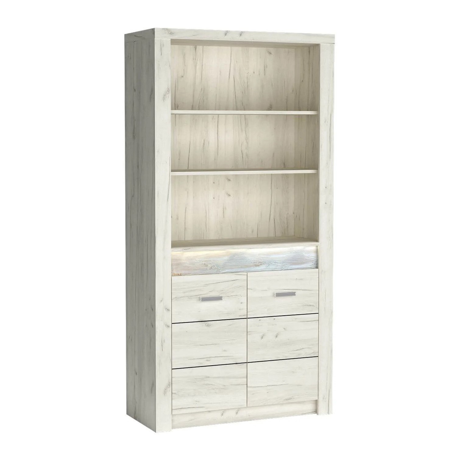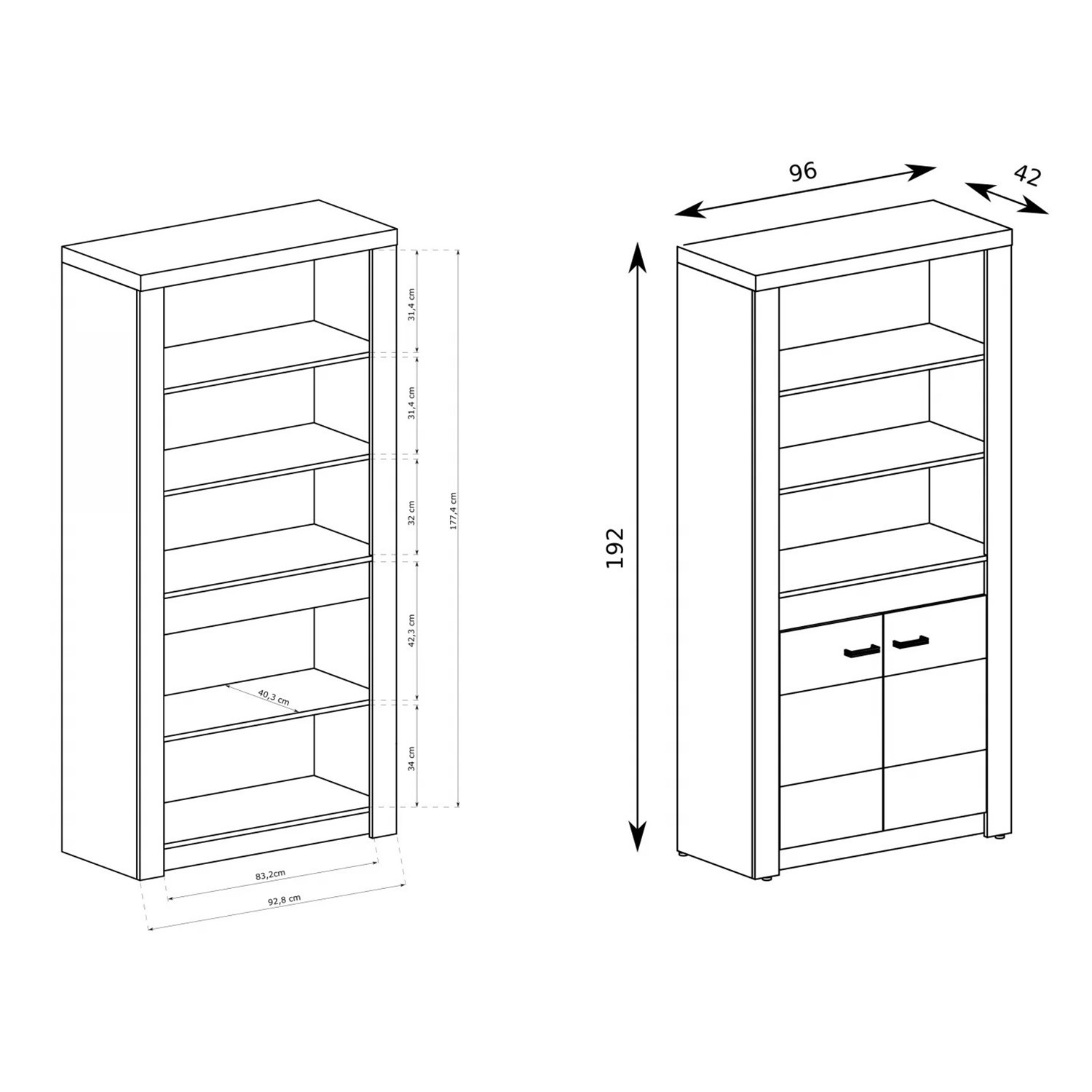 Елегантна етажерка с два открити рафта за книги, декорации или документи и долен шкаф с вътрешна полица за допълнително място за съхранение – стилна и практична комбинация, която внася хармония и ред във всяко помещение, серия Индианаполис.