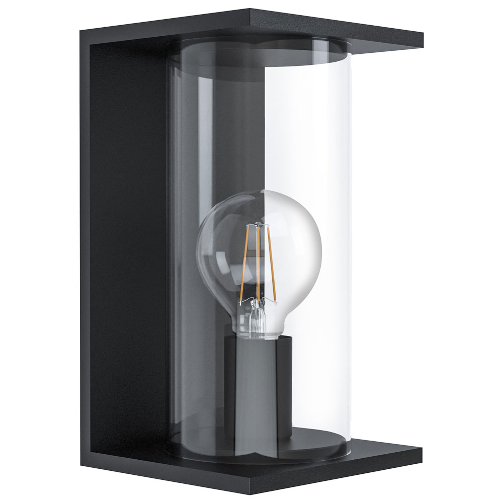 Модерен фасаден аплик, изработен от черен метал с цилиндрично тяло от прозрачно стъкло Eglo, серия Cascinetta.