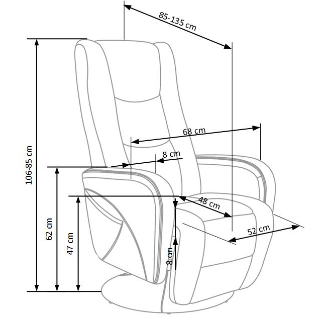 • Размери: 68 х 85-135 х 106-85 см, височина на седалката от земята: 47 см