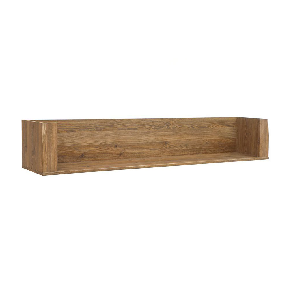Функционален стенен рафт със заден и странични панели, изработен от ПДЧ и МДФ в цвят златна лиственица, модулна система Берген.