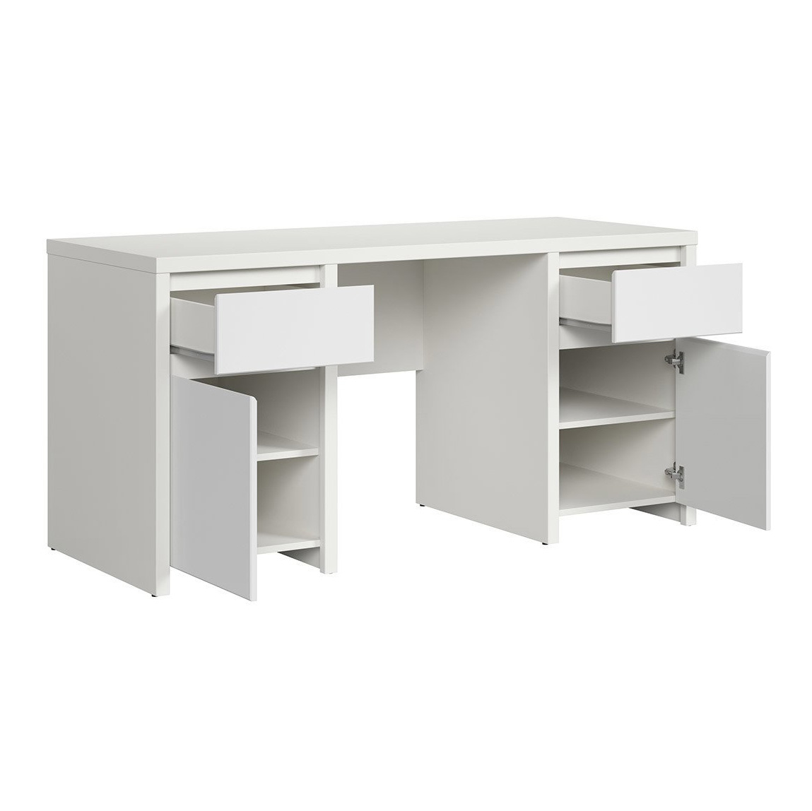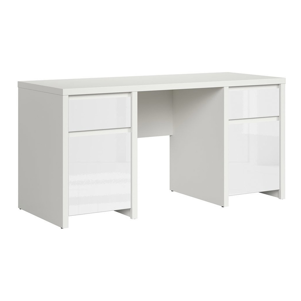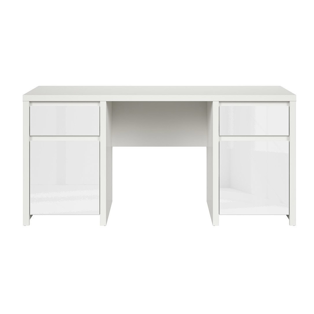 Функционално офис бюро от ПДЧ в бяло с две чекмеджета и две вратички в два варианта – с матирана или гланцирана повърхност, модулна система Каспиан Бял.
