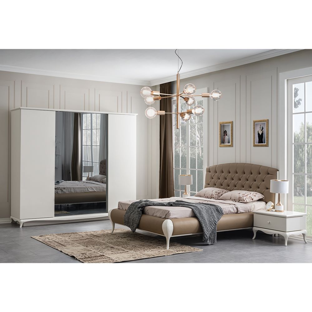 Изработен е с лице от МДФ и огледално стъкло с масивни крачета.