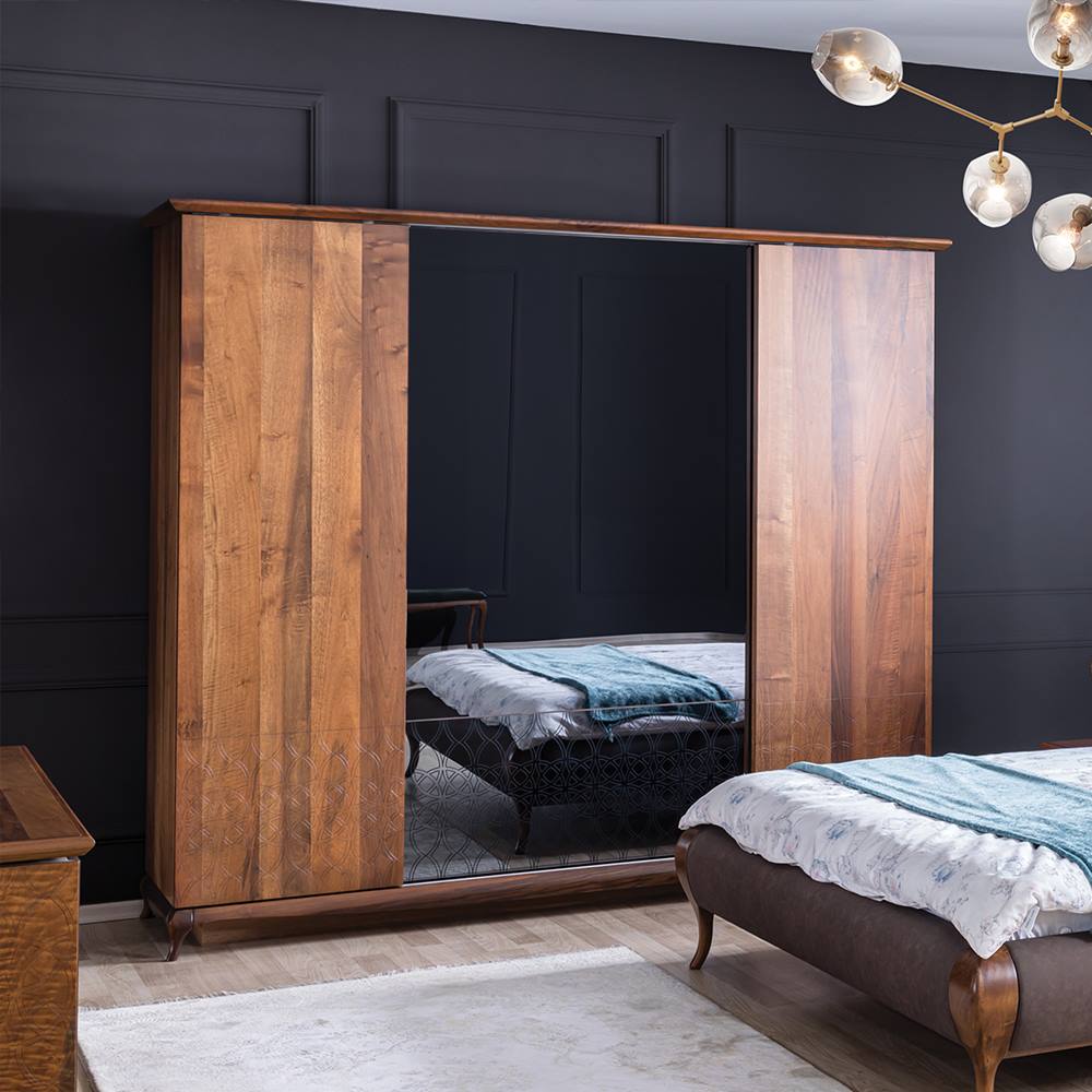 Четирикрилен гардероб с огледало Хесен (2 цвята)