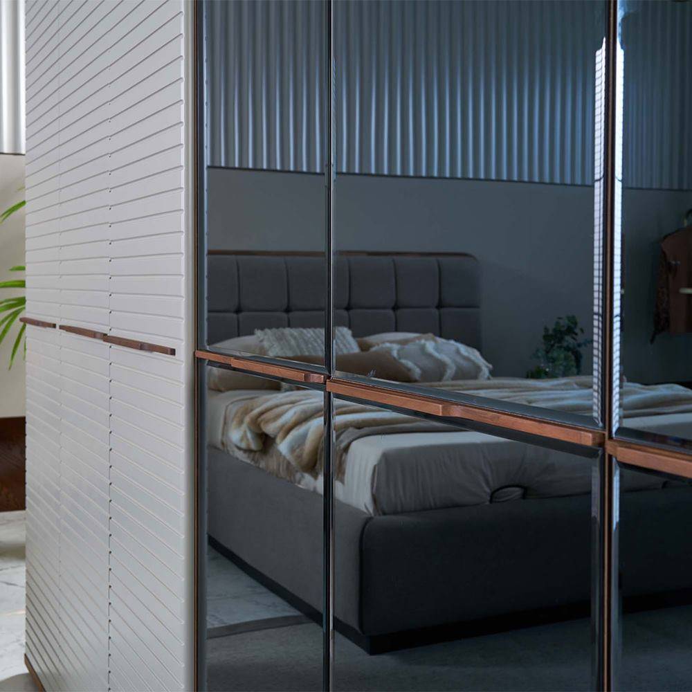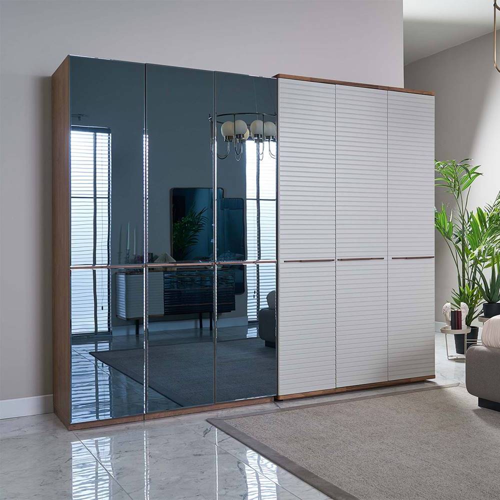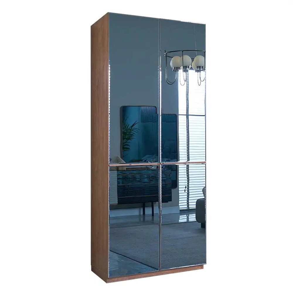 Функционален гардероб от дърво и огледално стъкло с модерен дизайн.
