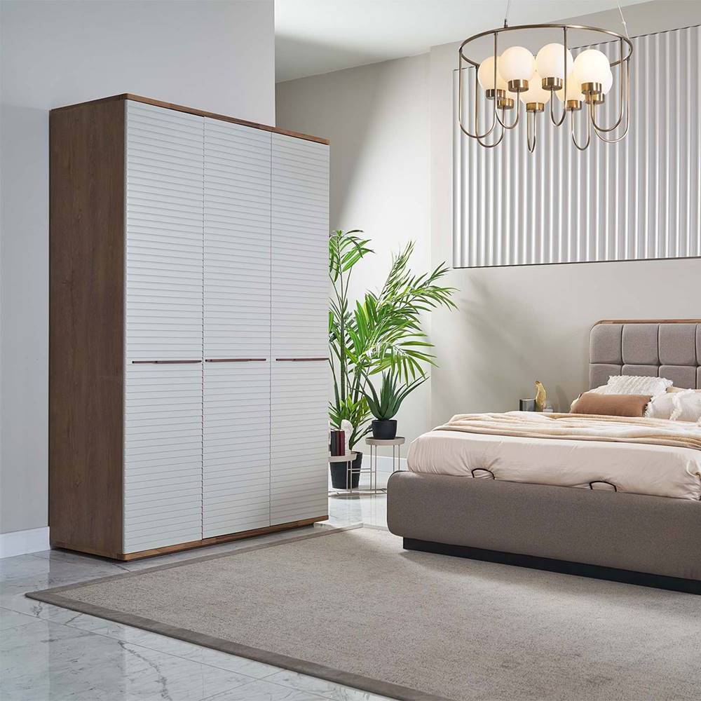 Трикрилен гардероб с рафтове и чекмеджета Форн (4 цвята)