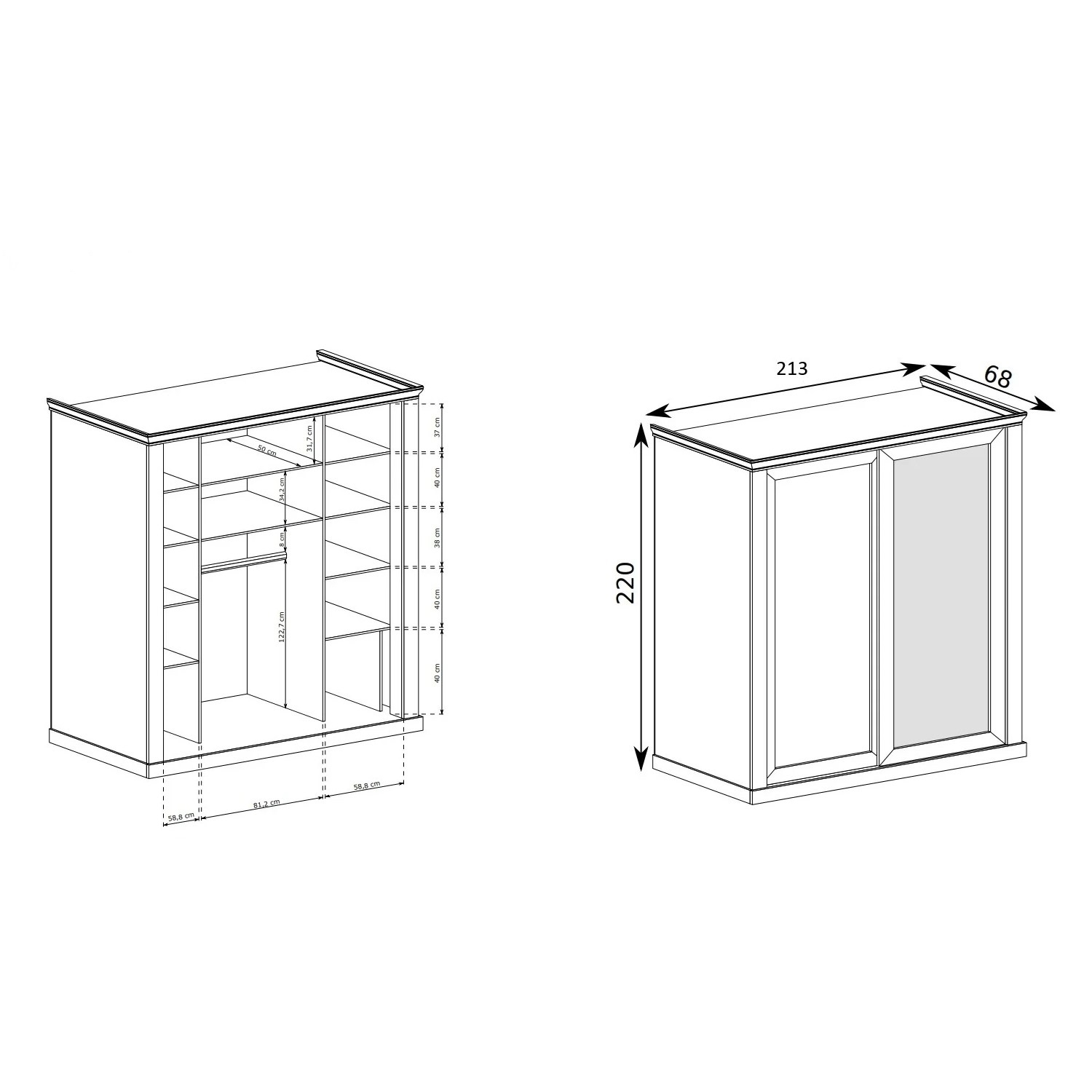 - Размери: 213 х 68 х 220 см