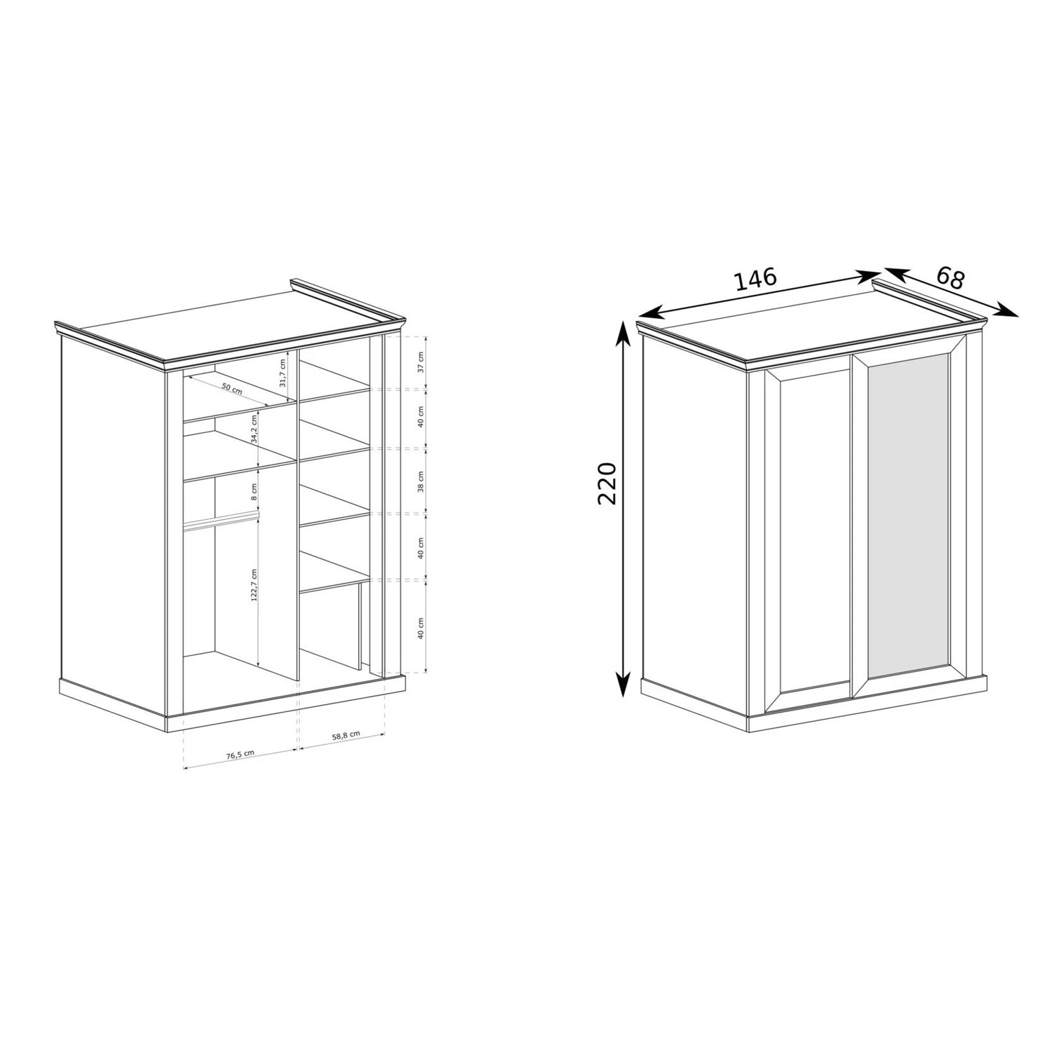 Гардероб с две плъзгащи врати серия Антика-размери