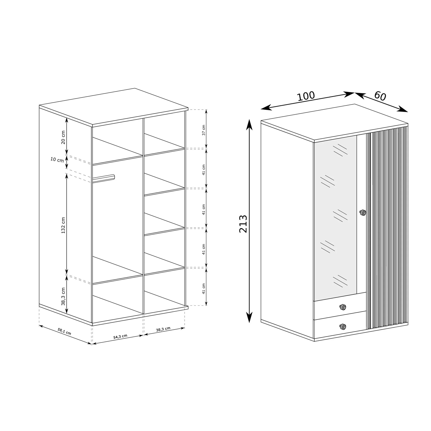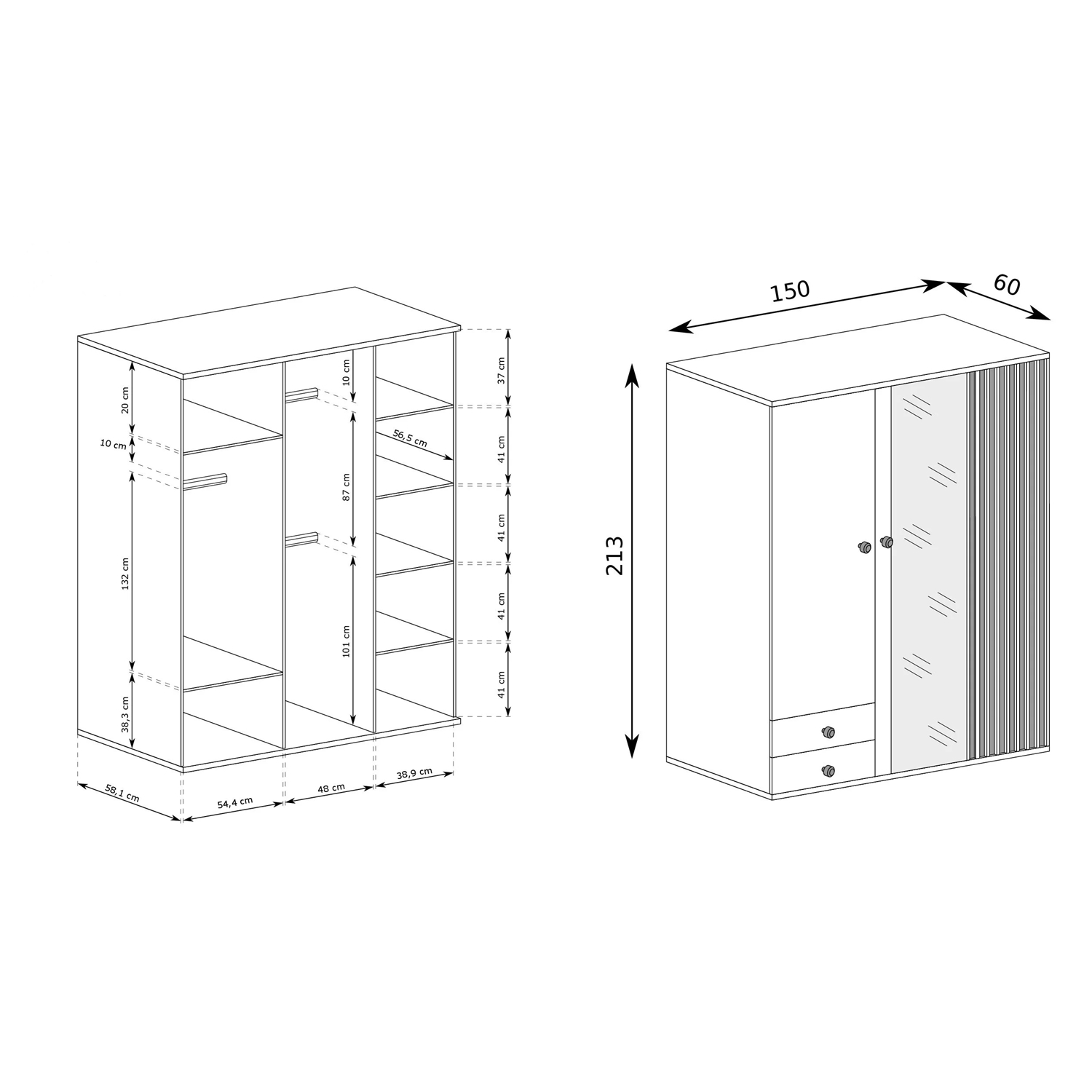 Двукрилен гардероб с огледало серия Cali (2 размера)