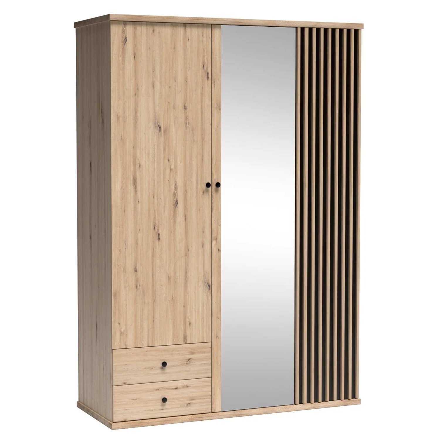 Моделът се откроява с елегантна комбинация от вертикални ламели в черен мат и корпус в цвят дъб артисан, придавайки модерен и стилен акцент на всяка стая.