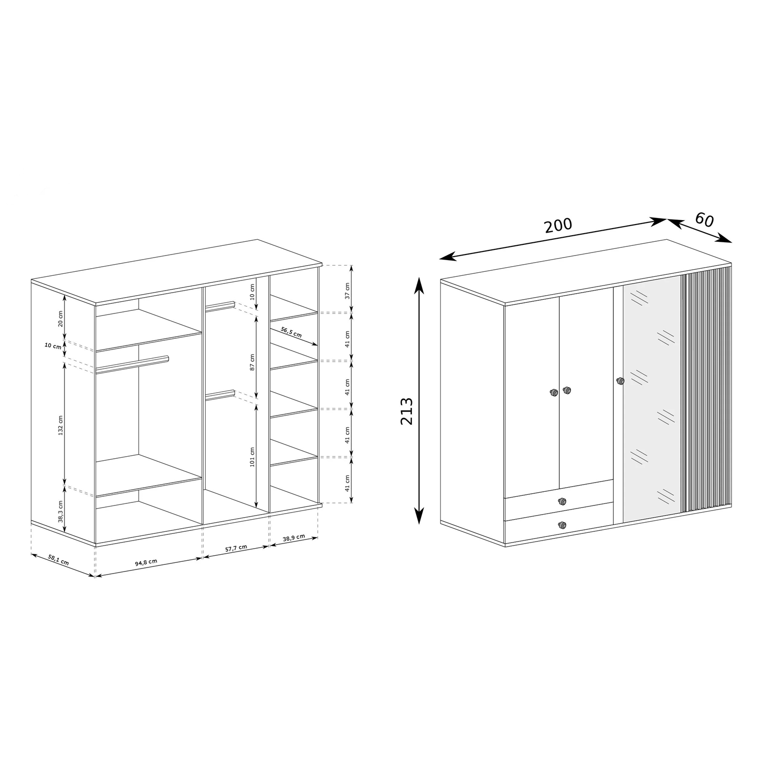 Стилен и голям гардероб с огледало врати и чекмеджета, серия Cali, който впечатлява с перфектен баланс между функционалност и изискан дизайн.