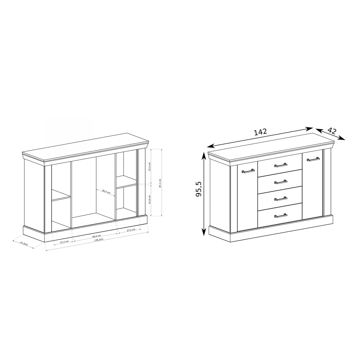 Практичен голям скрин с четири просторни чекмеджета и два шкафа с вътрешни рафтове, осигуряващи отлично място за съхранение и ежедневна организация, Antica.