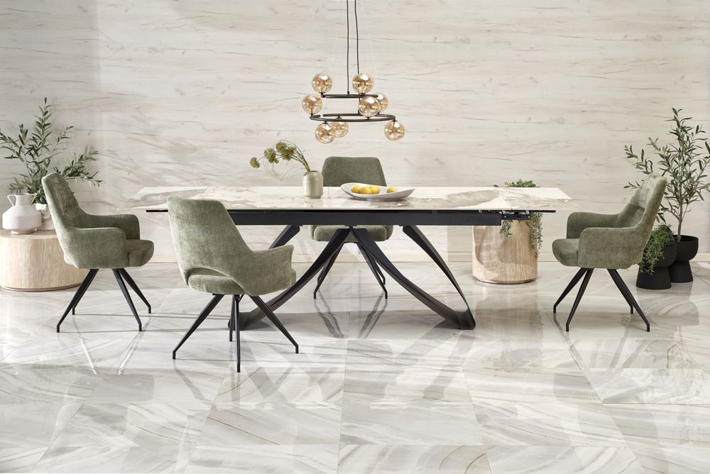 Голяма разтегателна маса за трапезария с плот като черен мрамор, Хелън