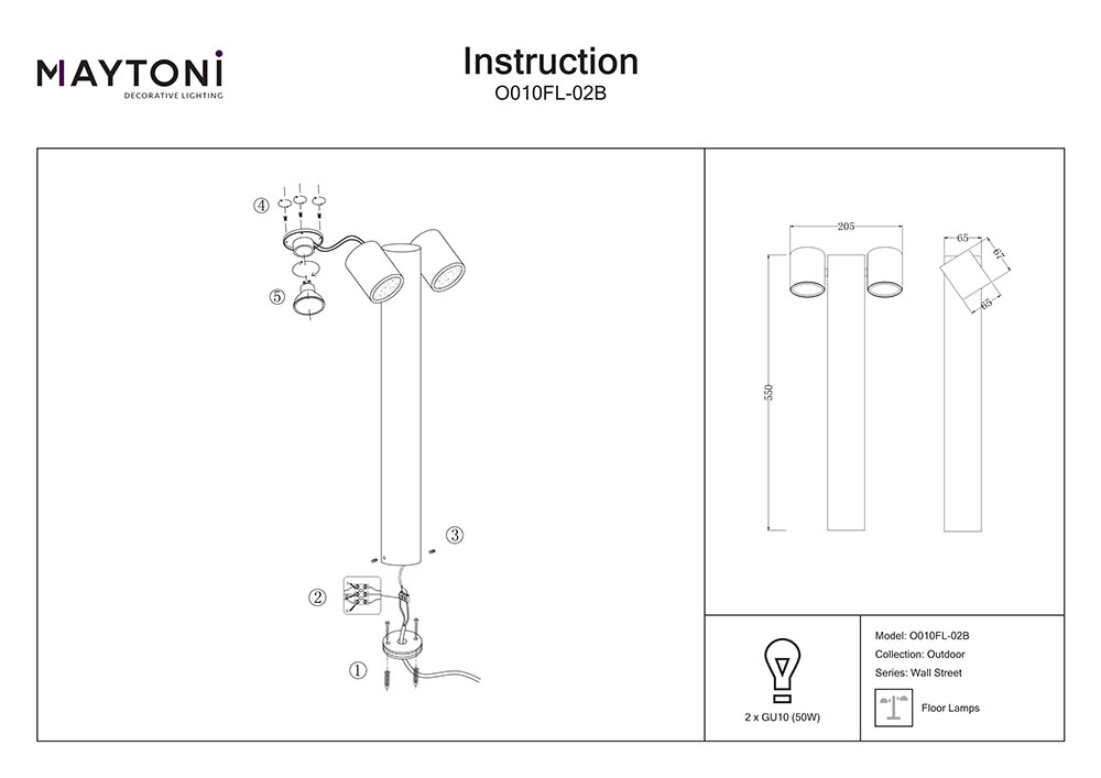 Вариант с 2 тела: 20,5 х 6,5 х 55 см - Фасонка: GU10
