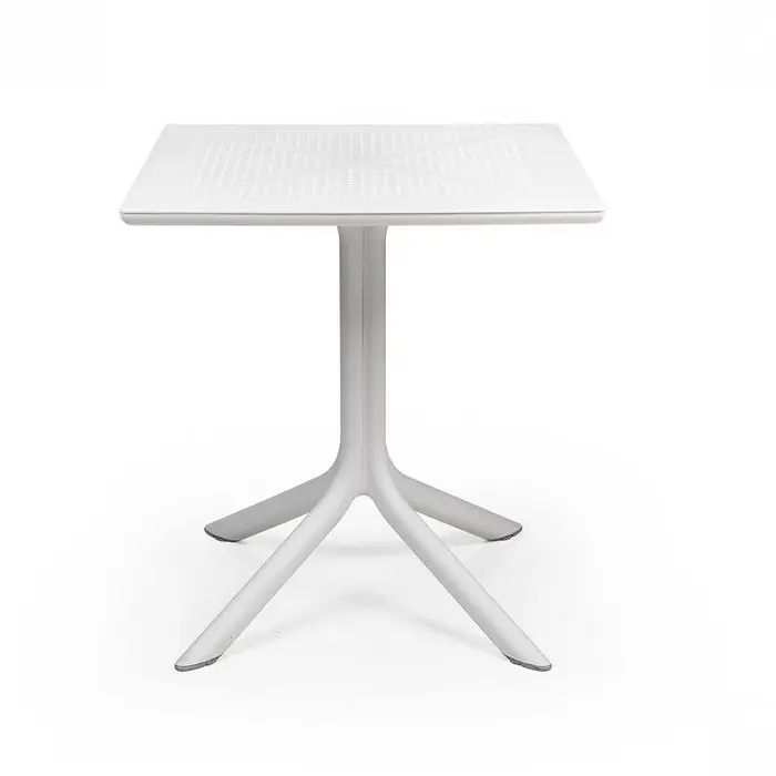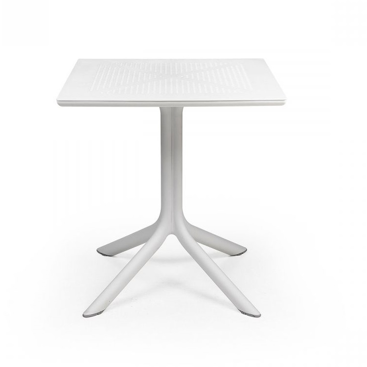 Градинска маса в бяло Соренто с квадратен плот и атрактивна основа.