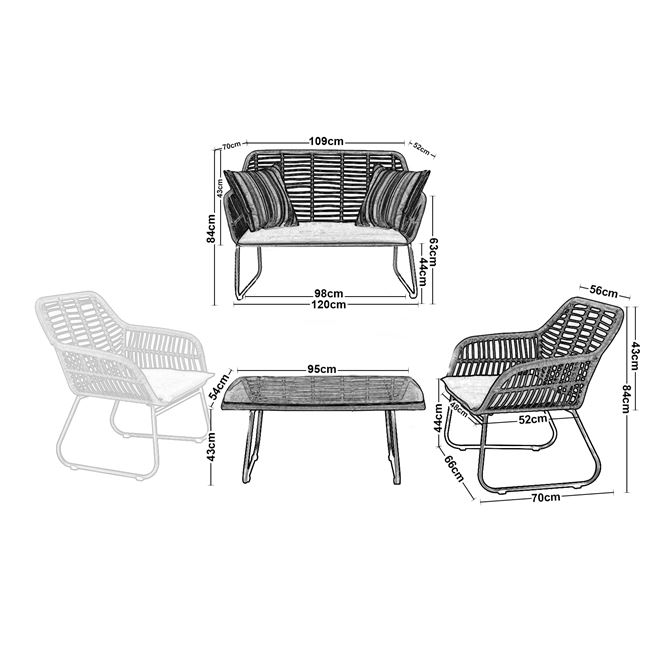 Градински комплект от 4 части в неутрален цвят и черно - размери