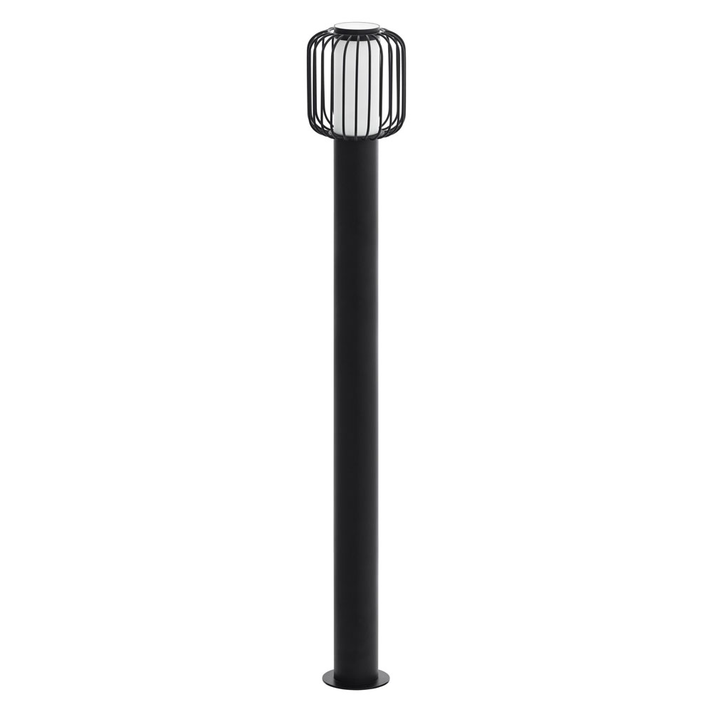 Градински лампион с бяло овално тяло от пластмаса с черна метална решетка и цилиндрична основа Eglo, серия Ravello.