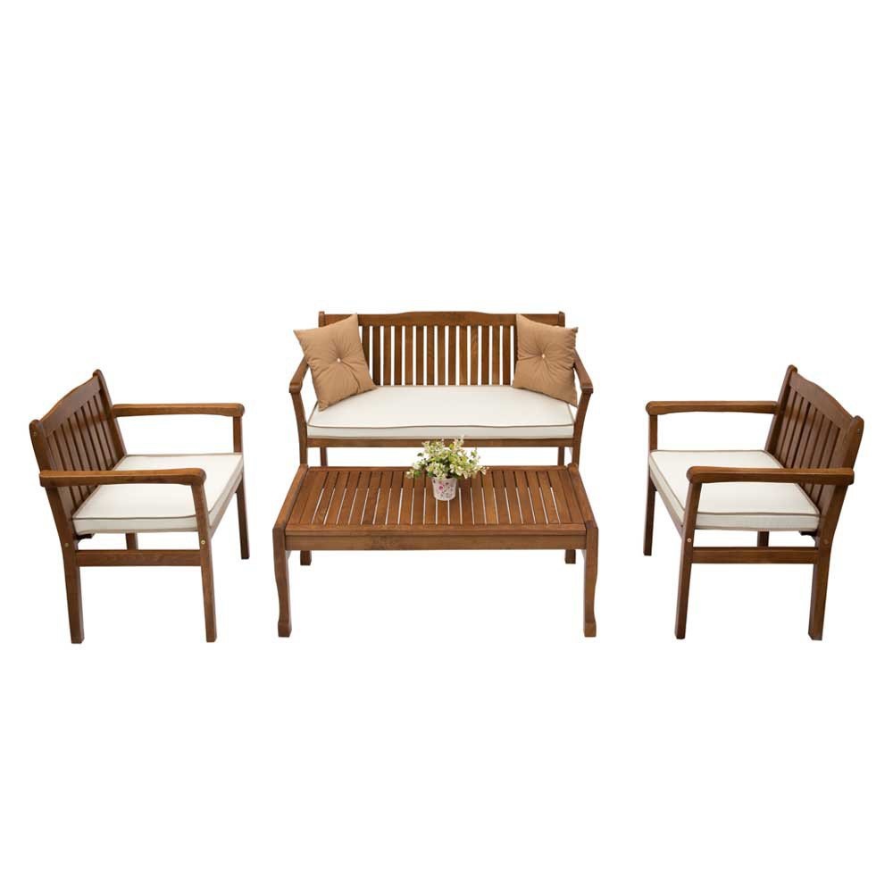 Стилен градински сет от 4 части – маса, столове и канапе в цвят орех, Ларс.