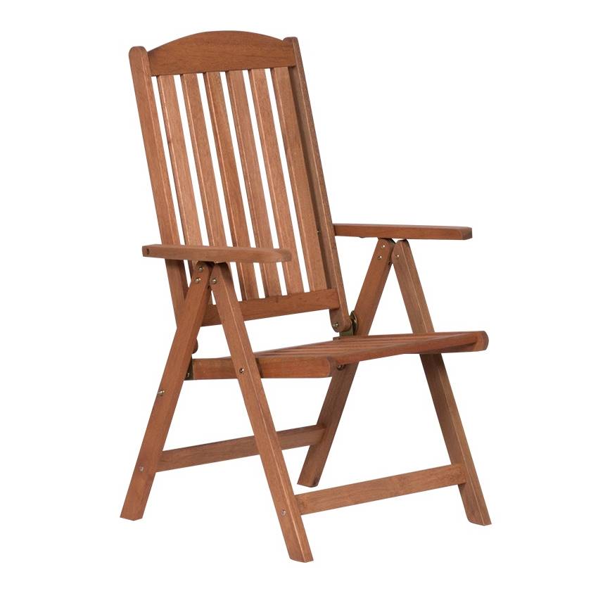Градинският сгъваем стол от тропическо дърво разполага с висока регулируема облегалка в шест различни позиции и удобни подлакътници за пълен комфорт.